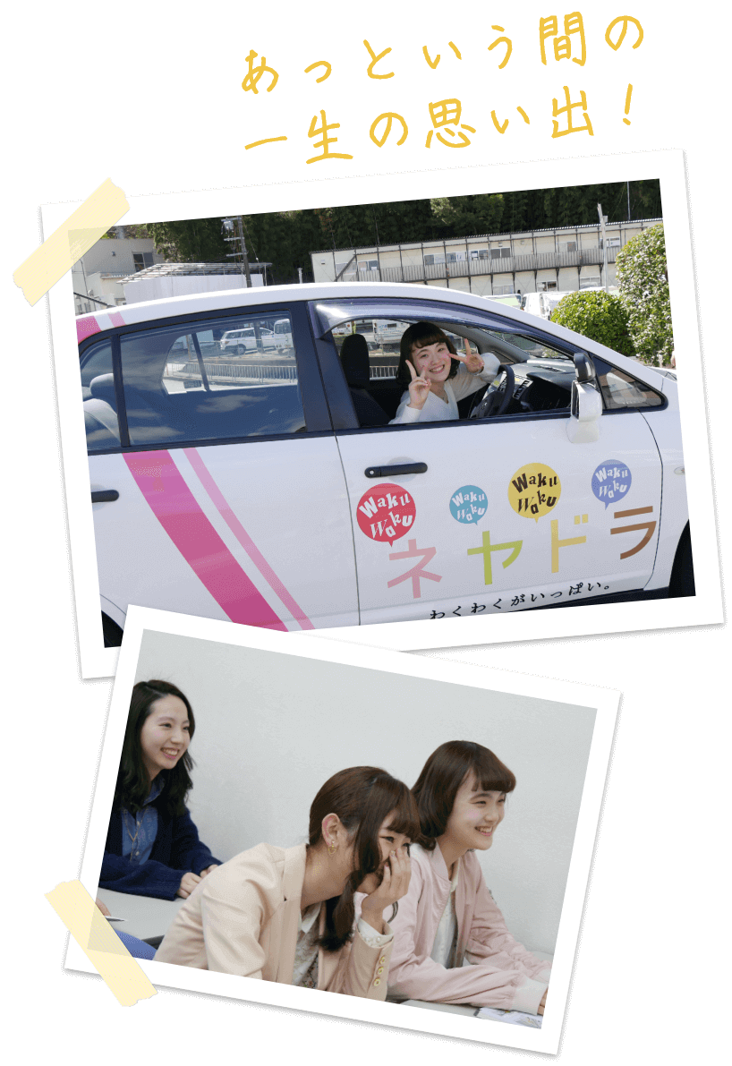 自動車教習所はつまらない?めんどくさい?いやいや、そんな思いはさせません。私たちネヤドラは、数週間から数ヶ月というこの短い期間を、目一杯楽しんでほしいと思っています。