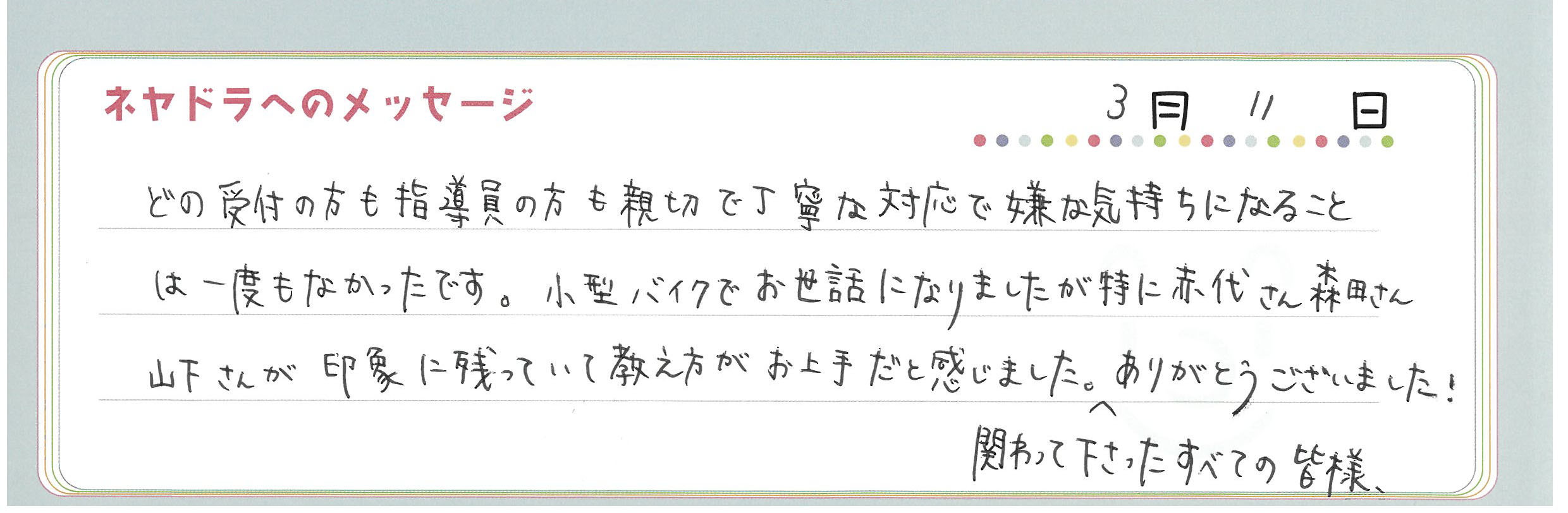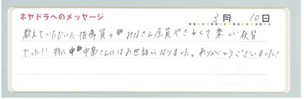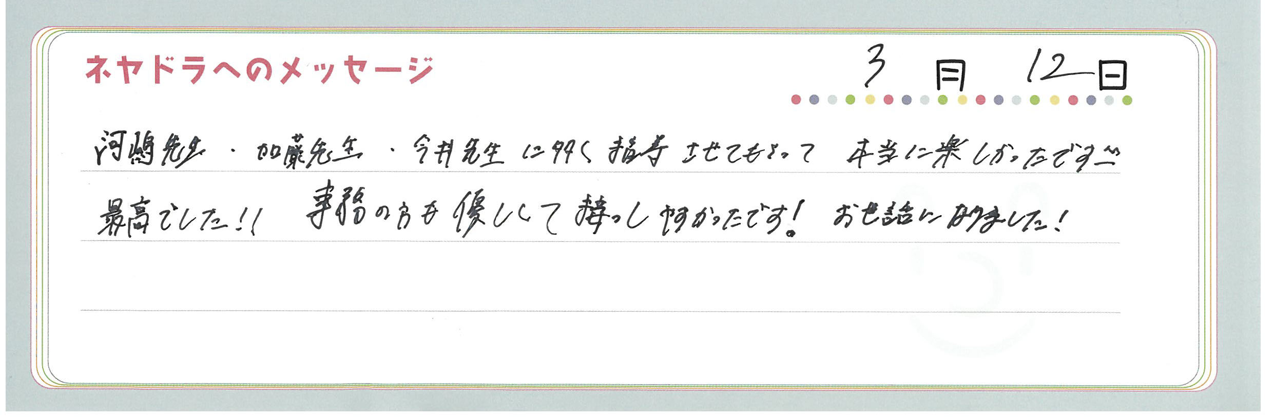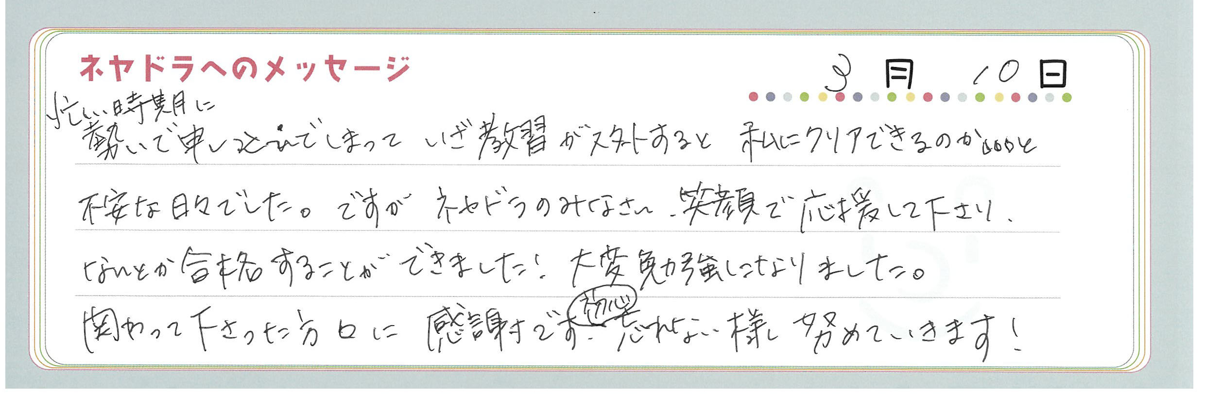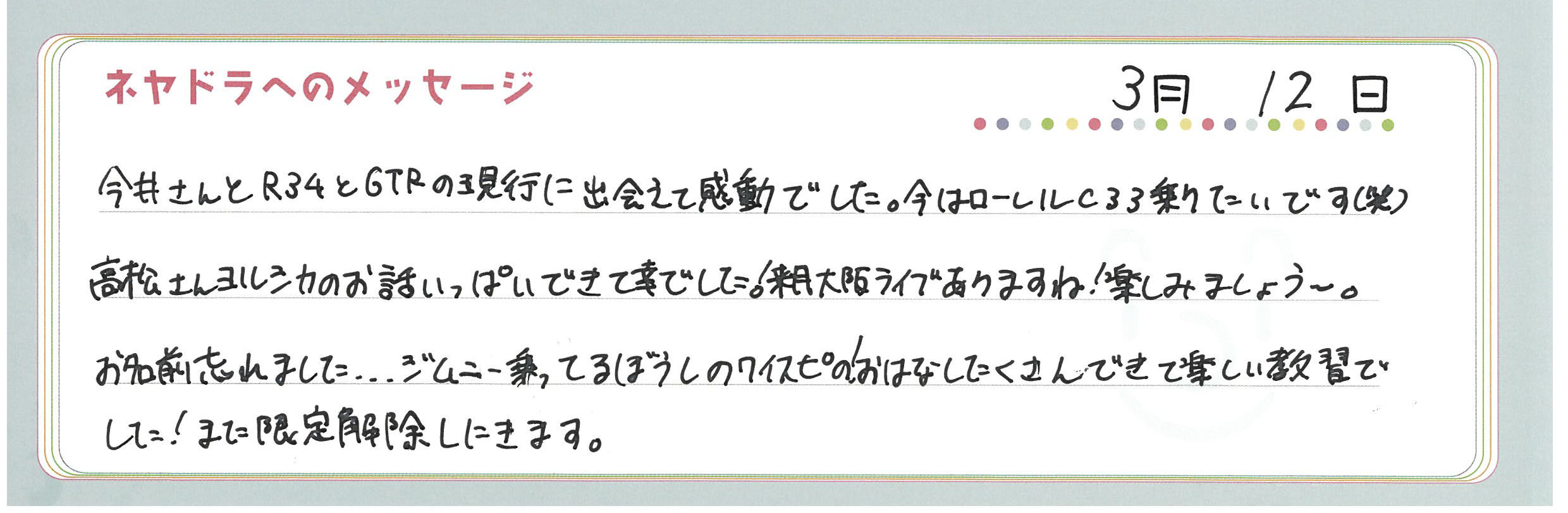 直筆メッセージ