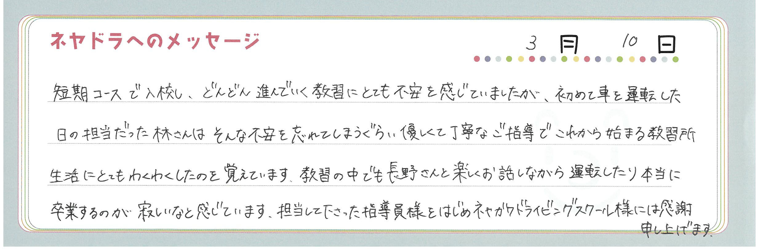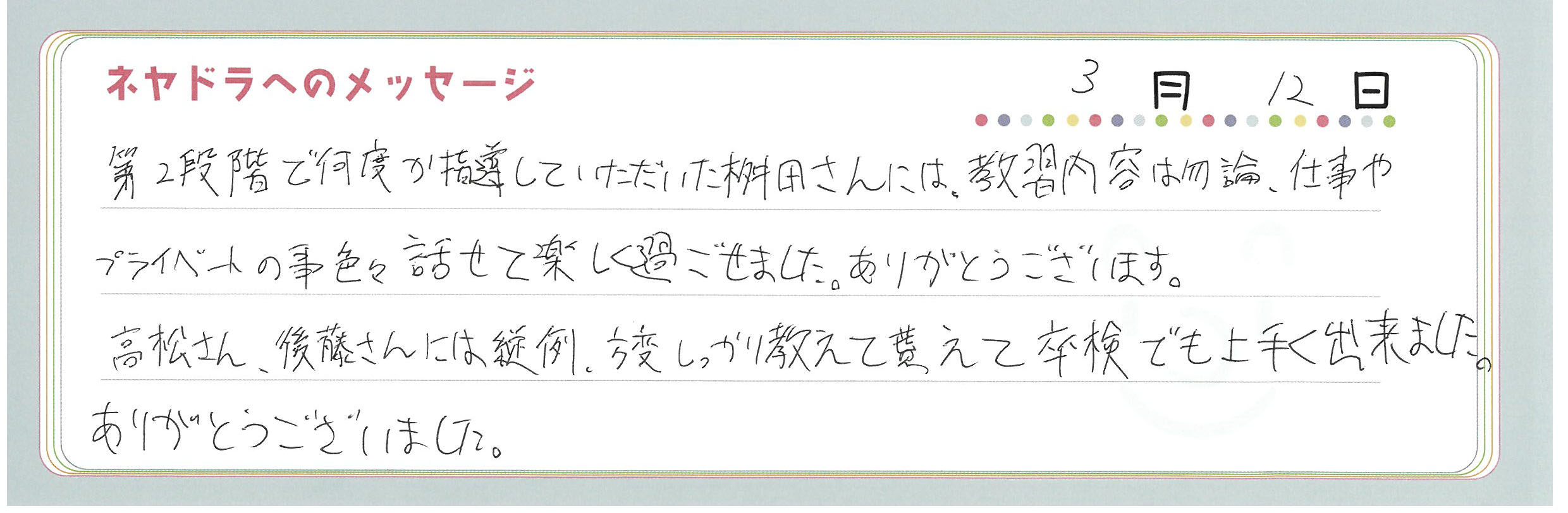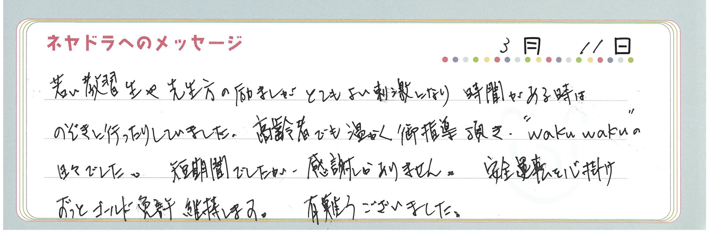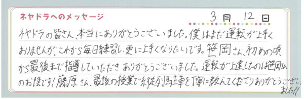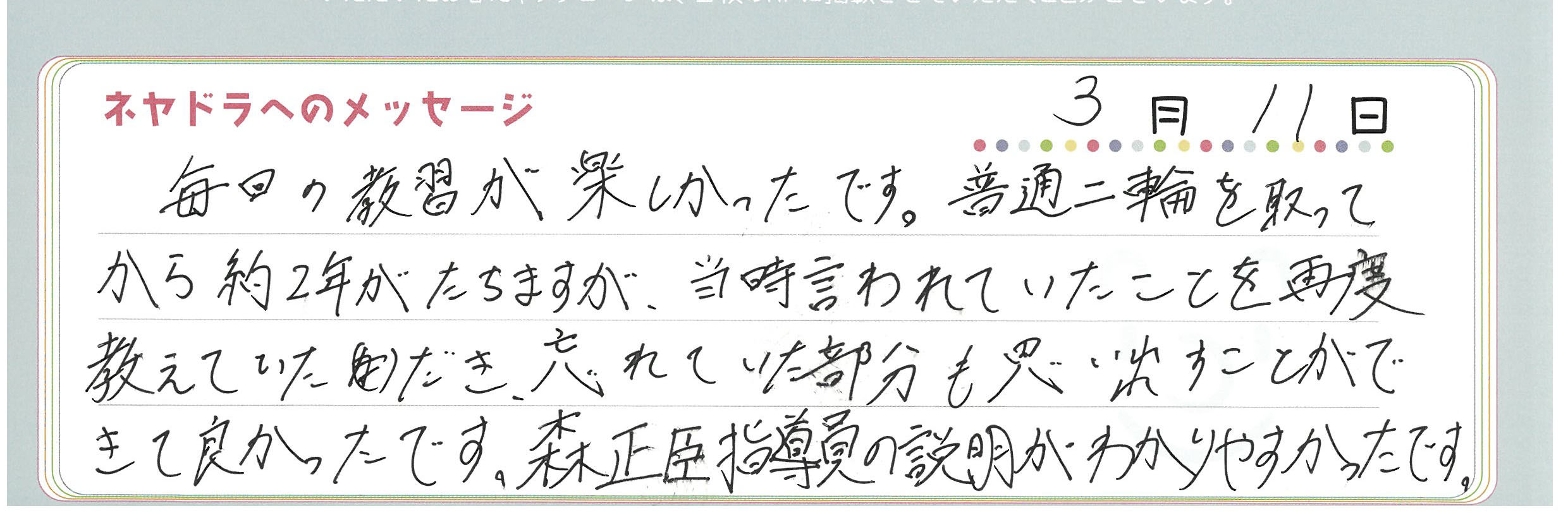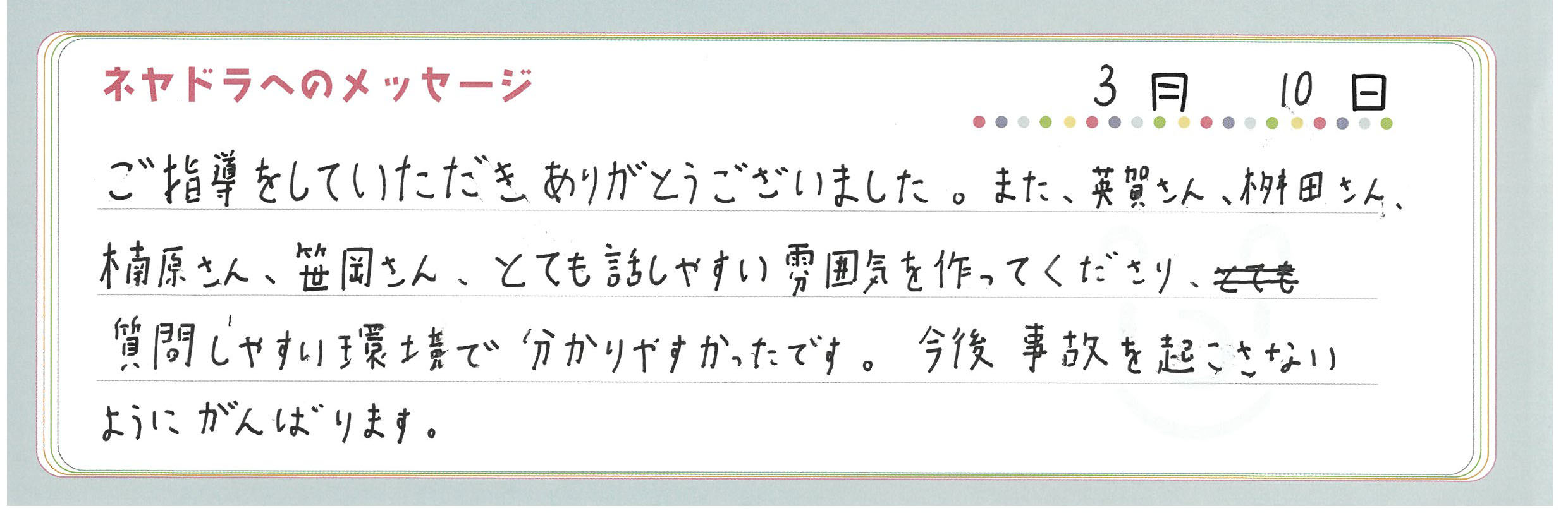 直筆メッセージ