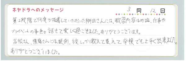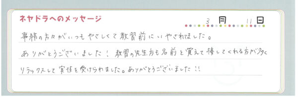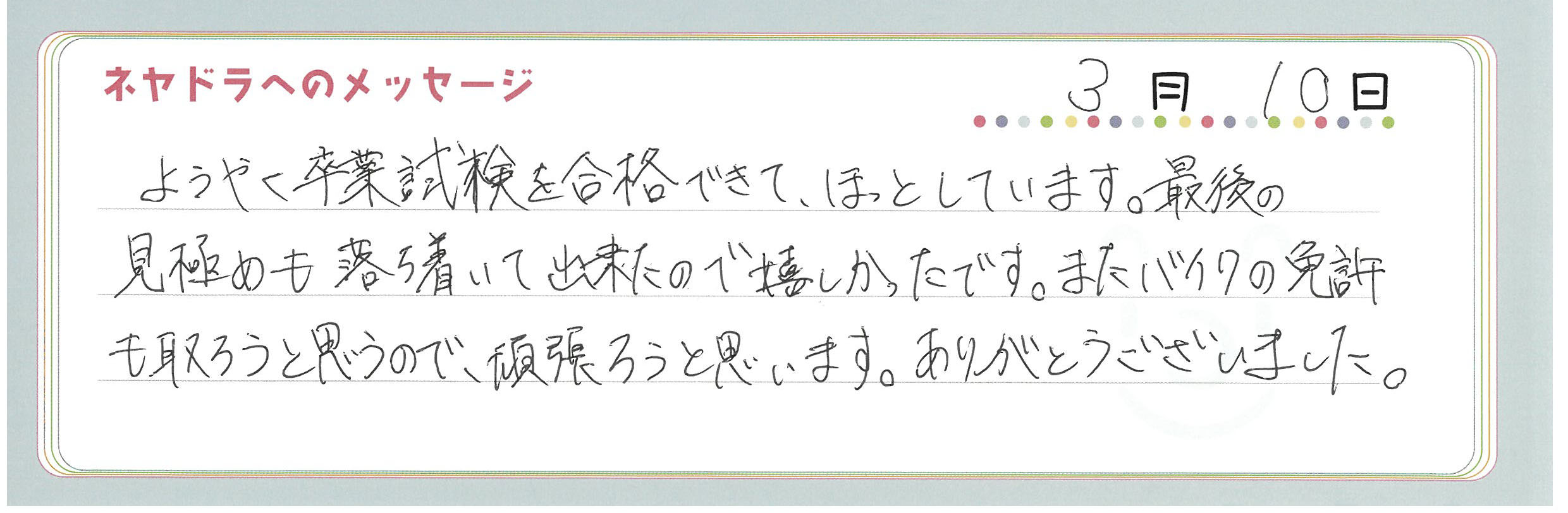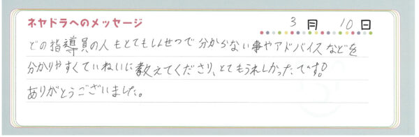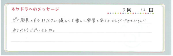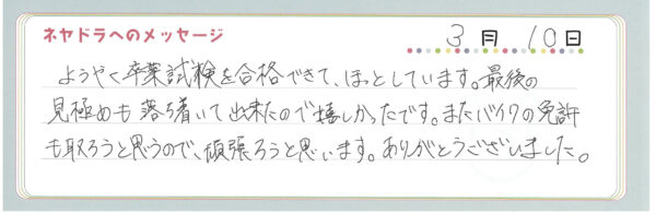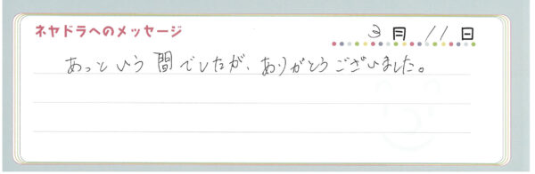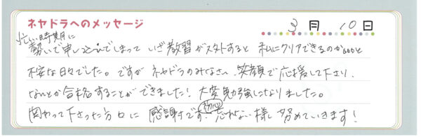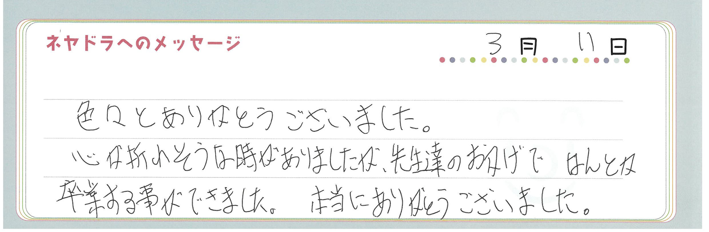 ご卒業時にお客様よりいただいた