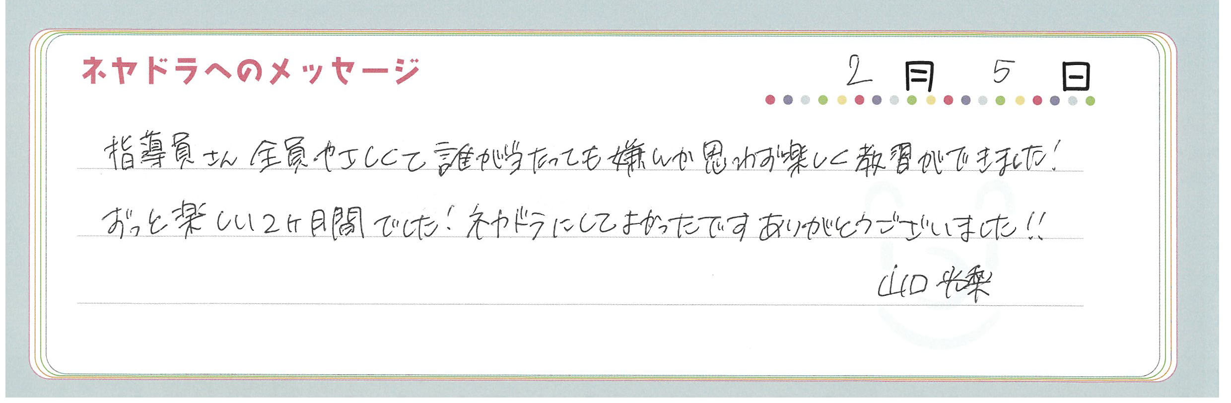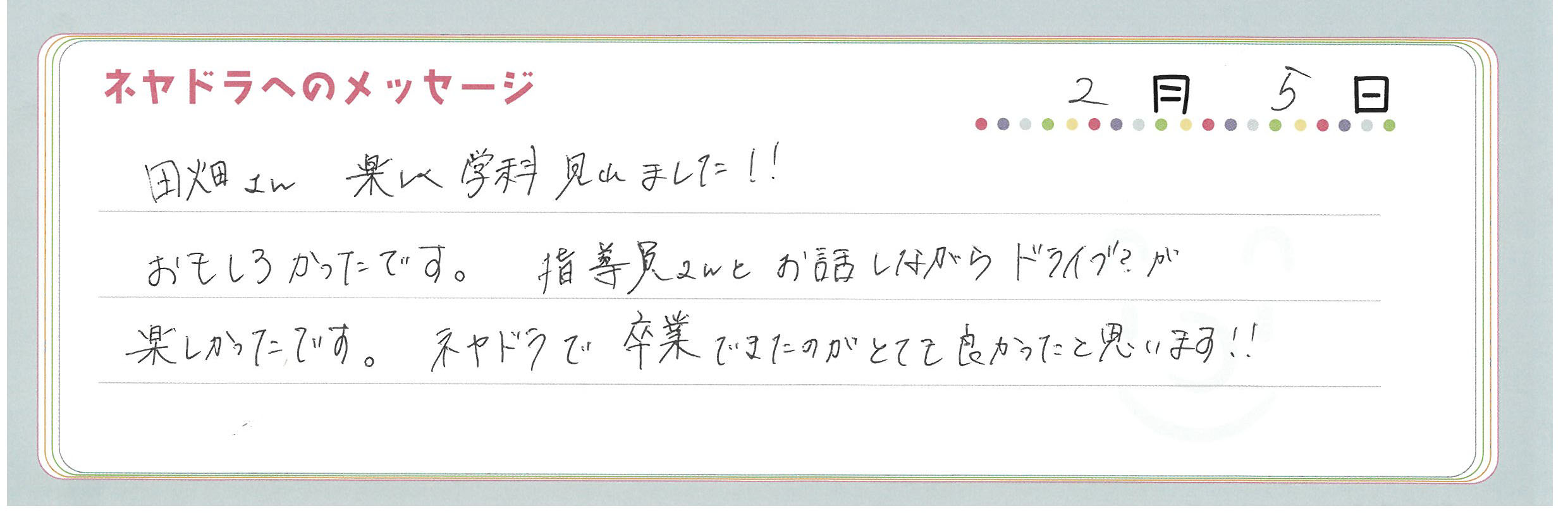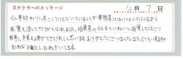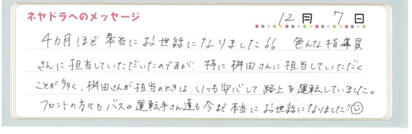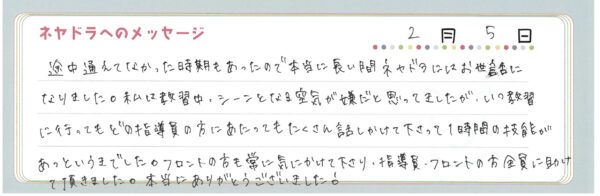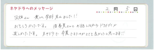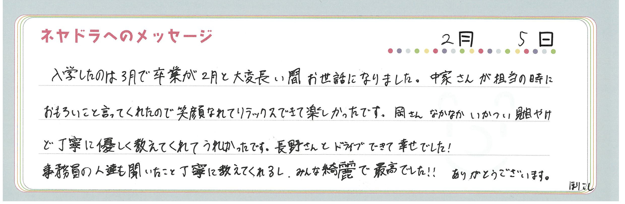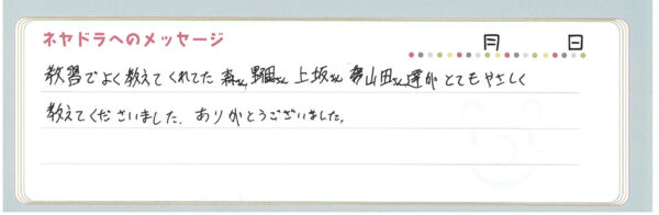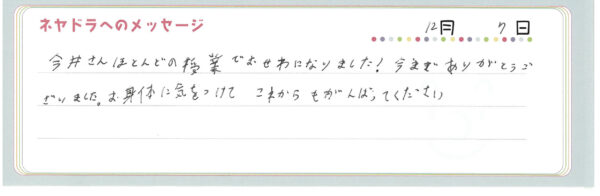 ご卒業時にお客様よりいただいた