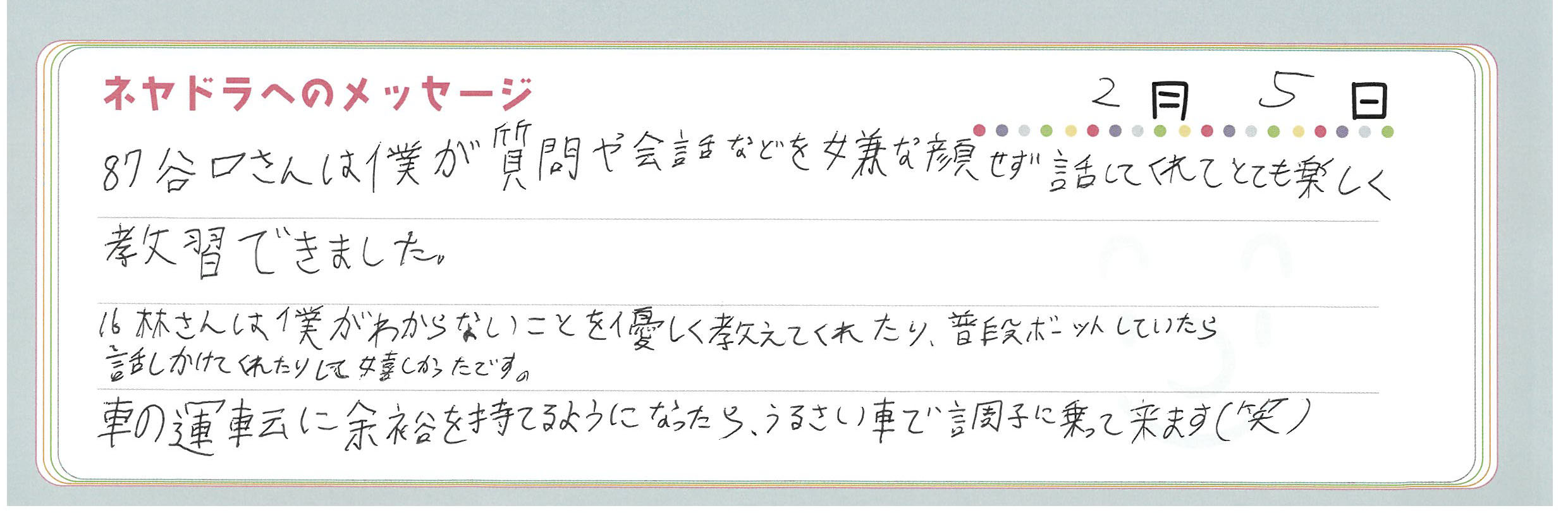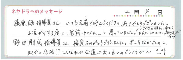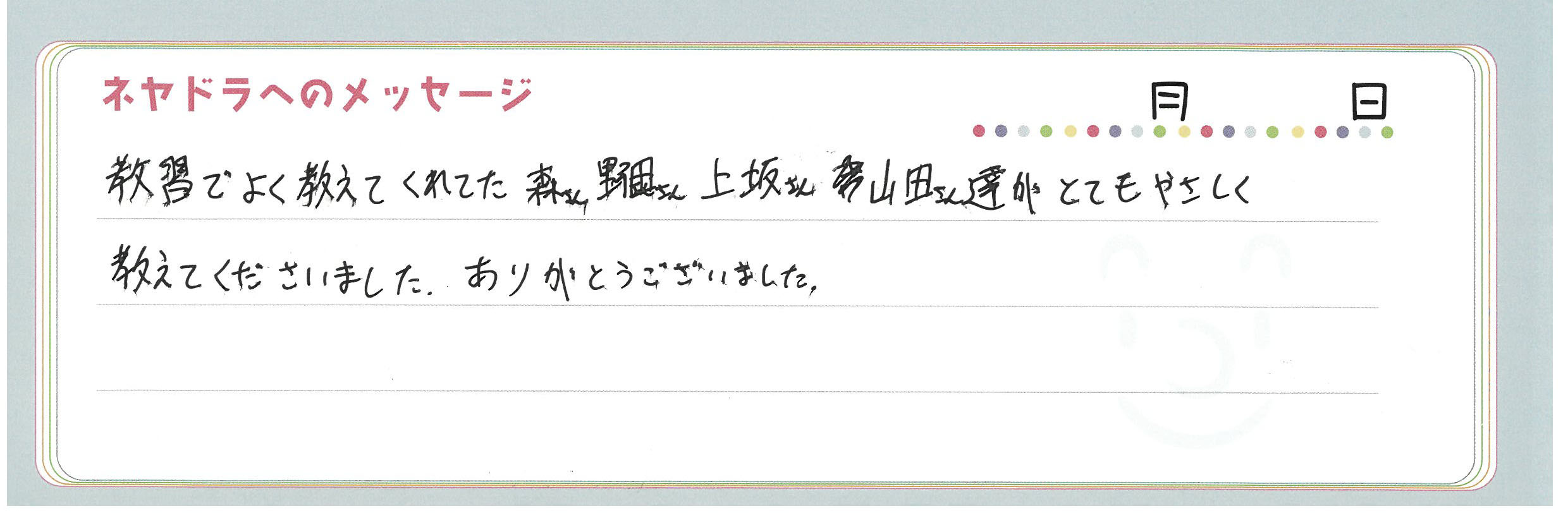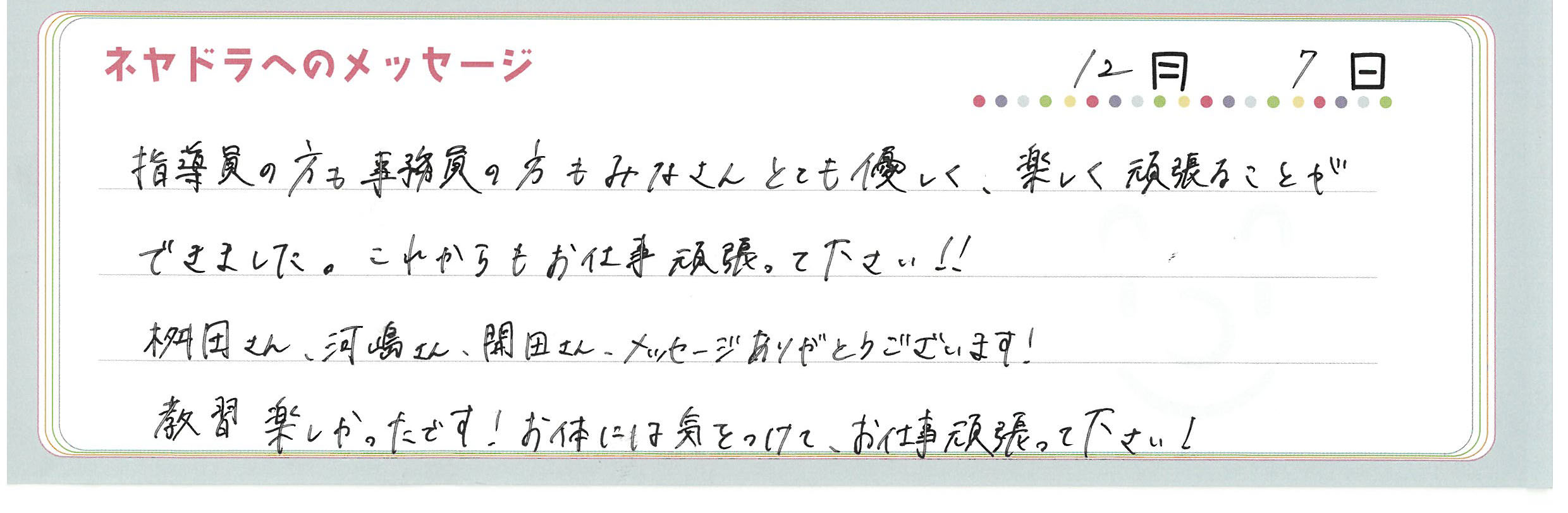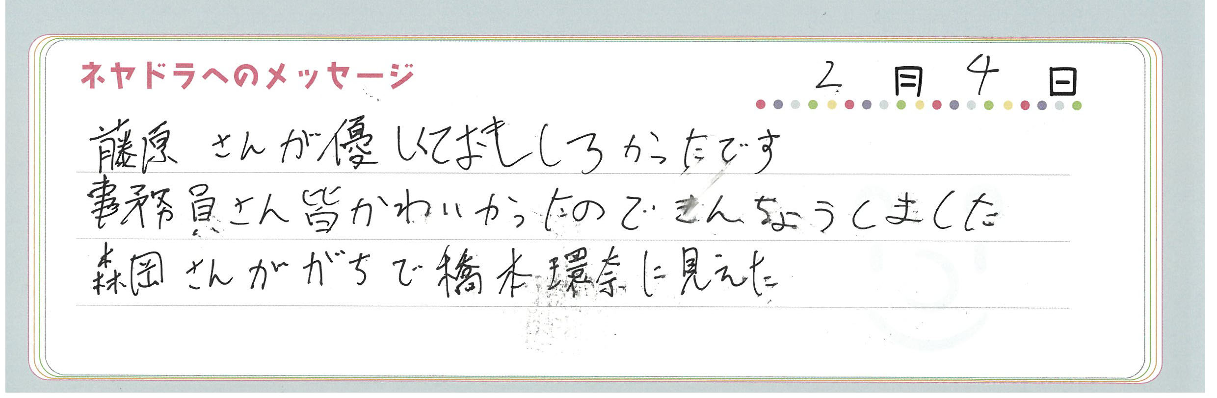 直筆メッセージ