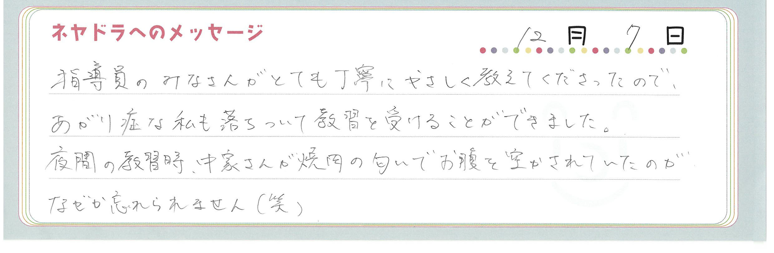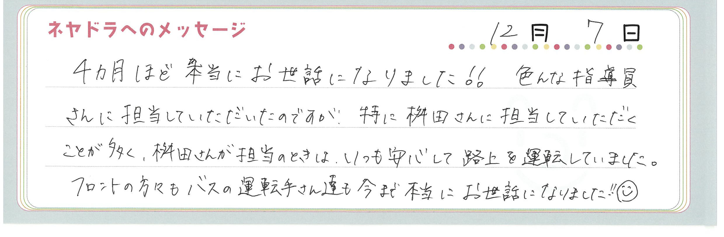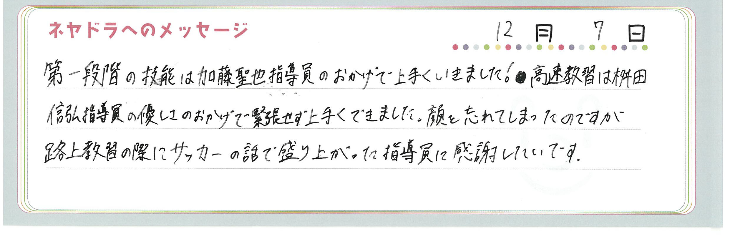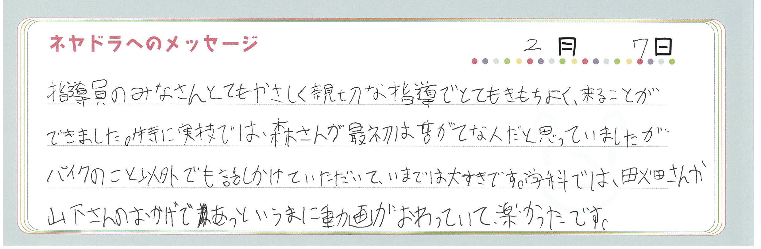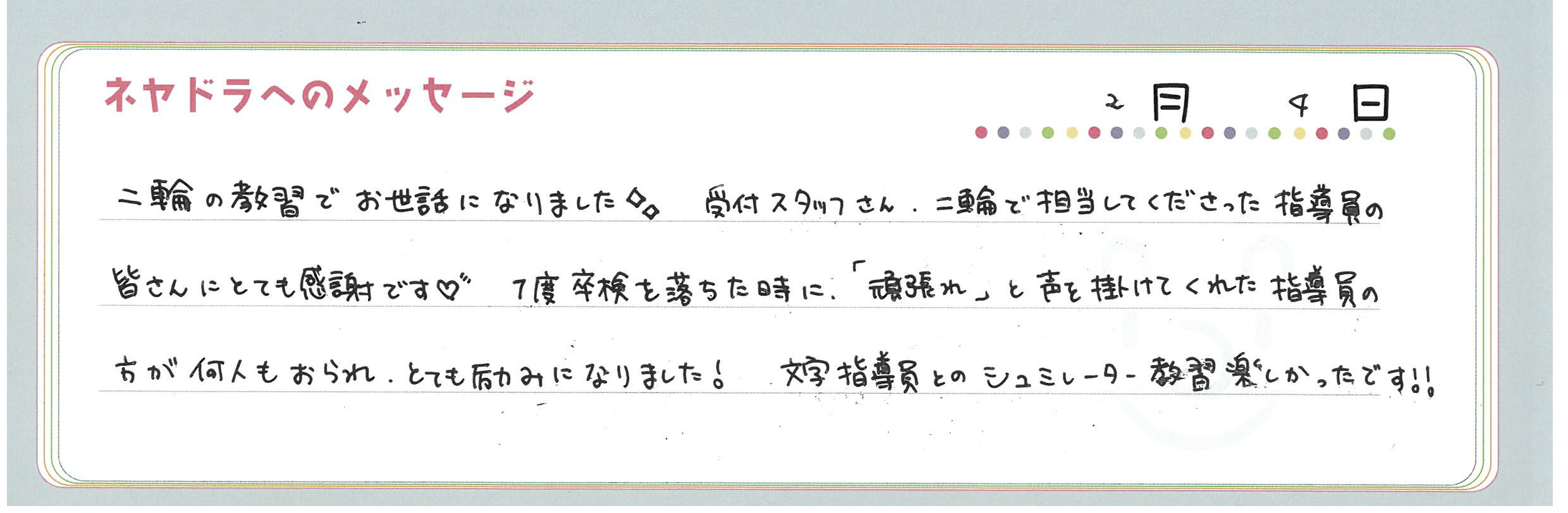 直筆メッセージ