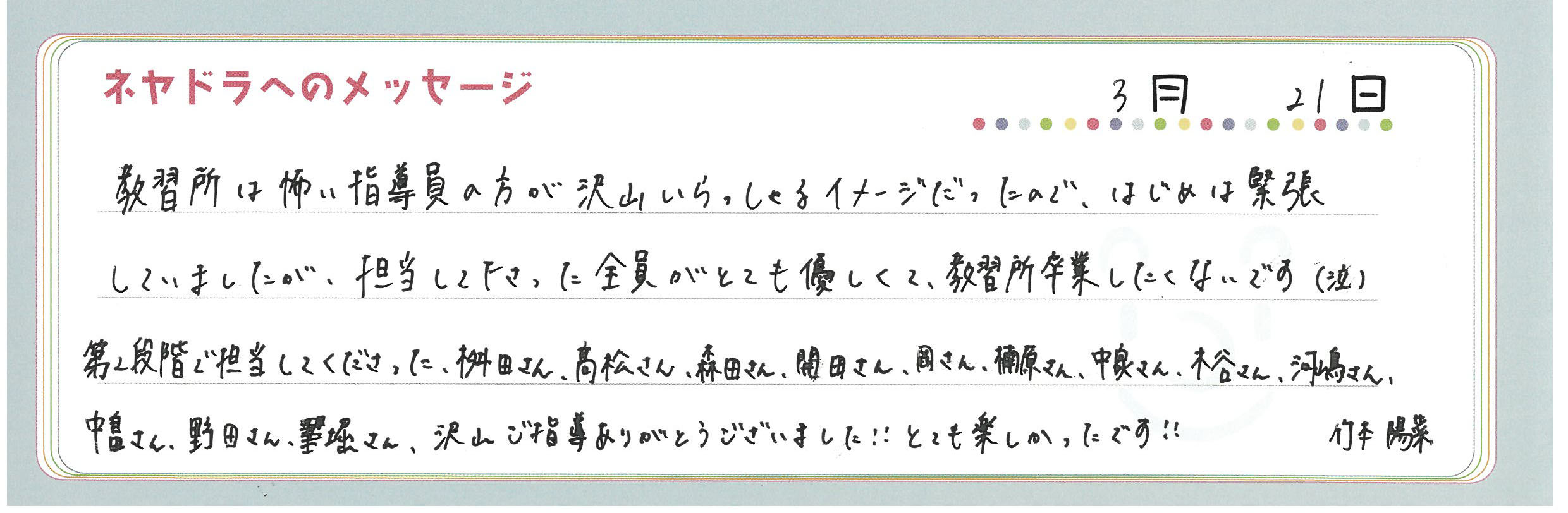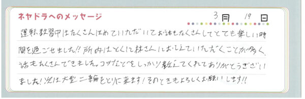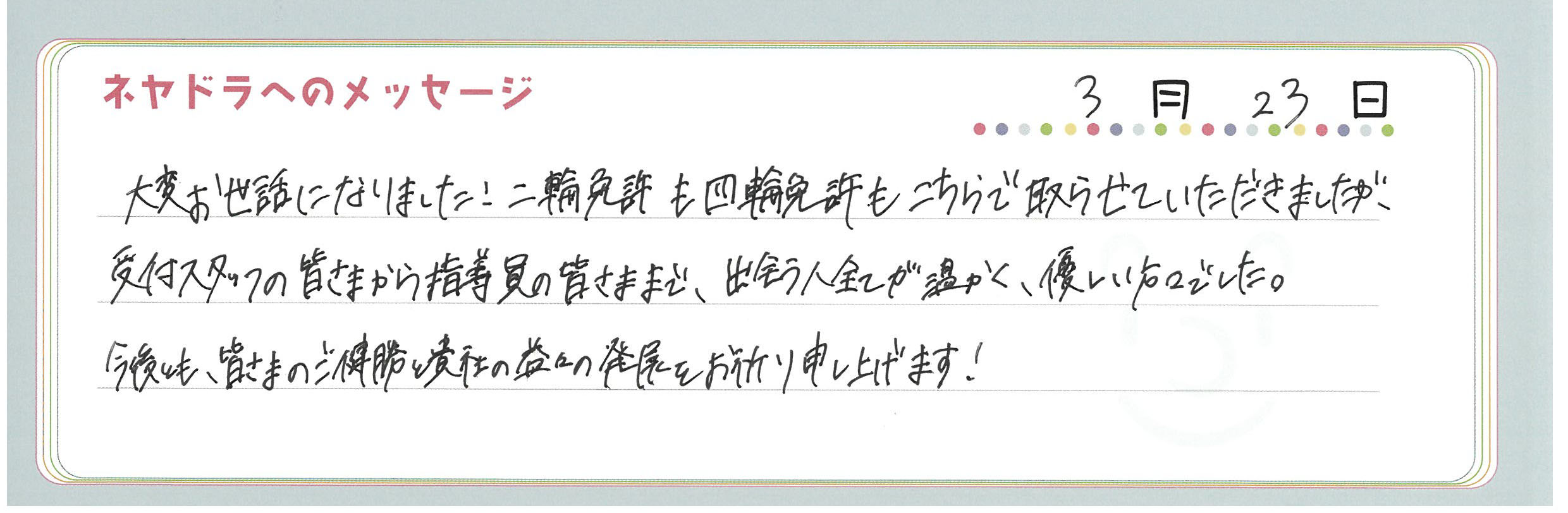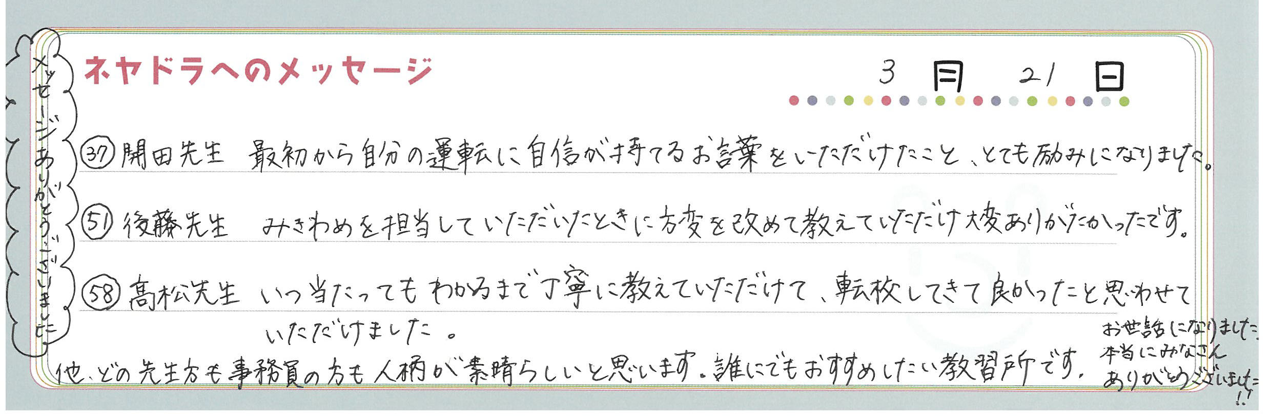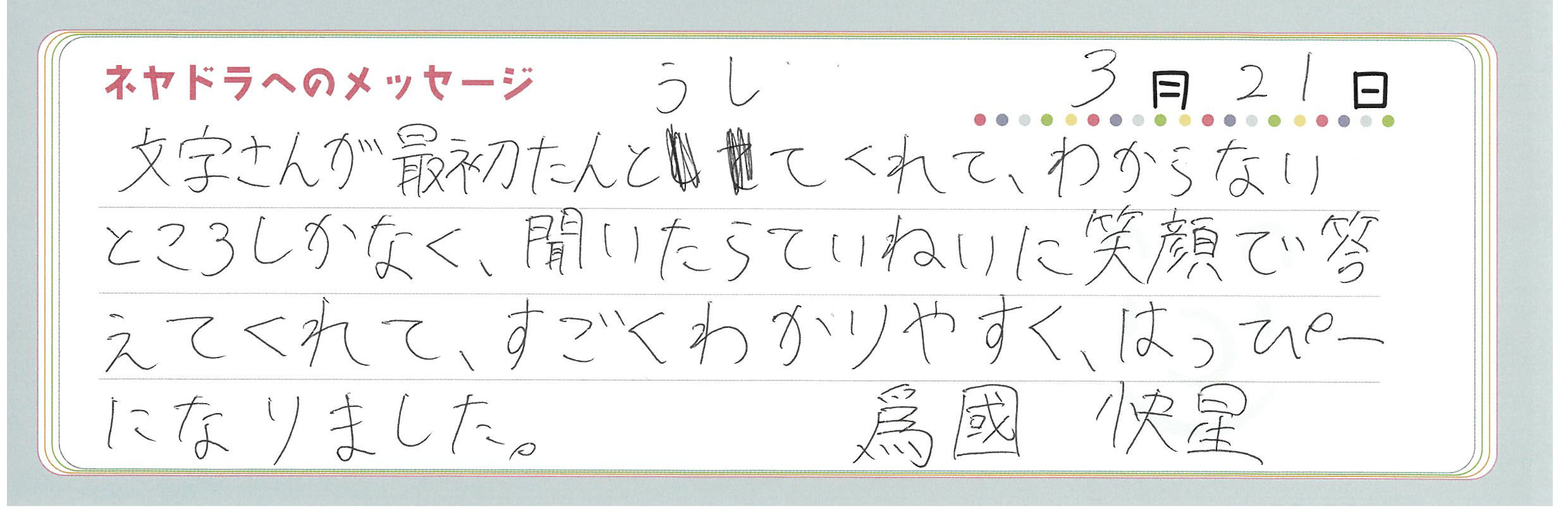 直筆メッセージ