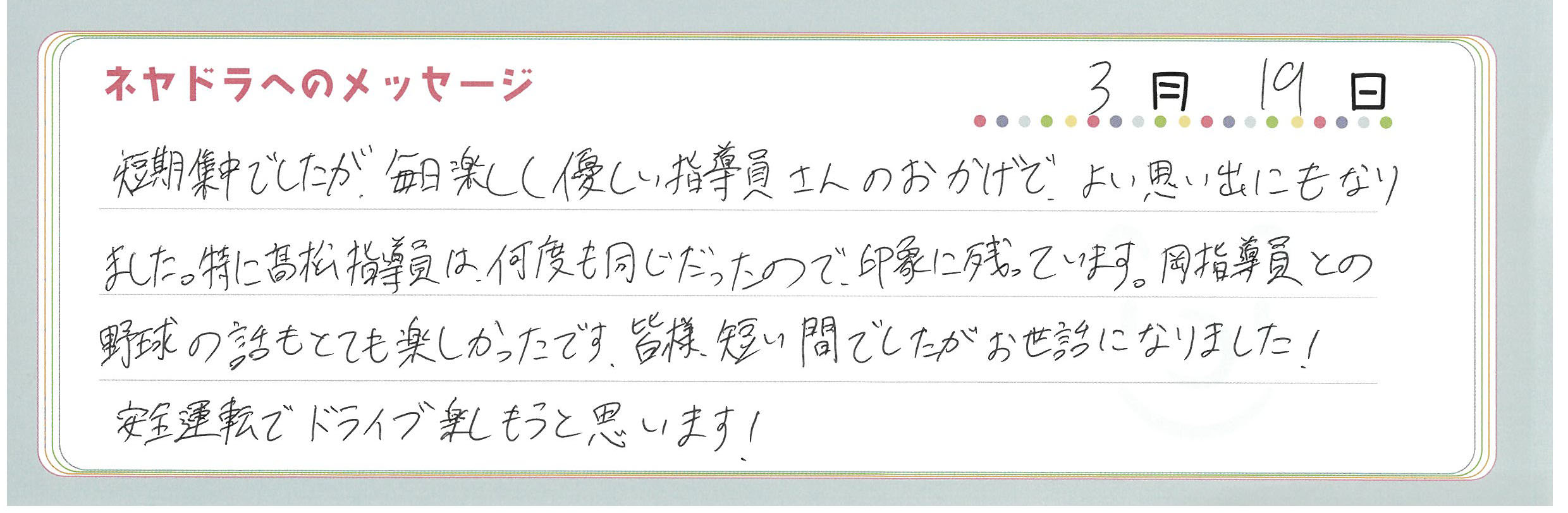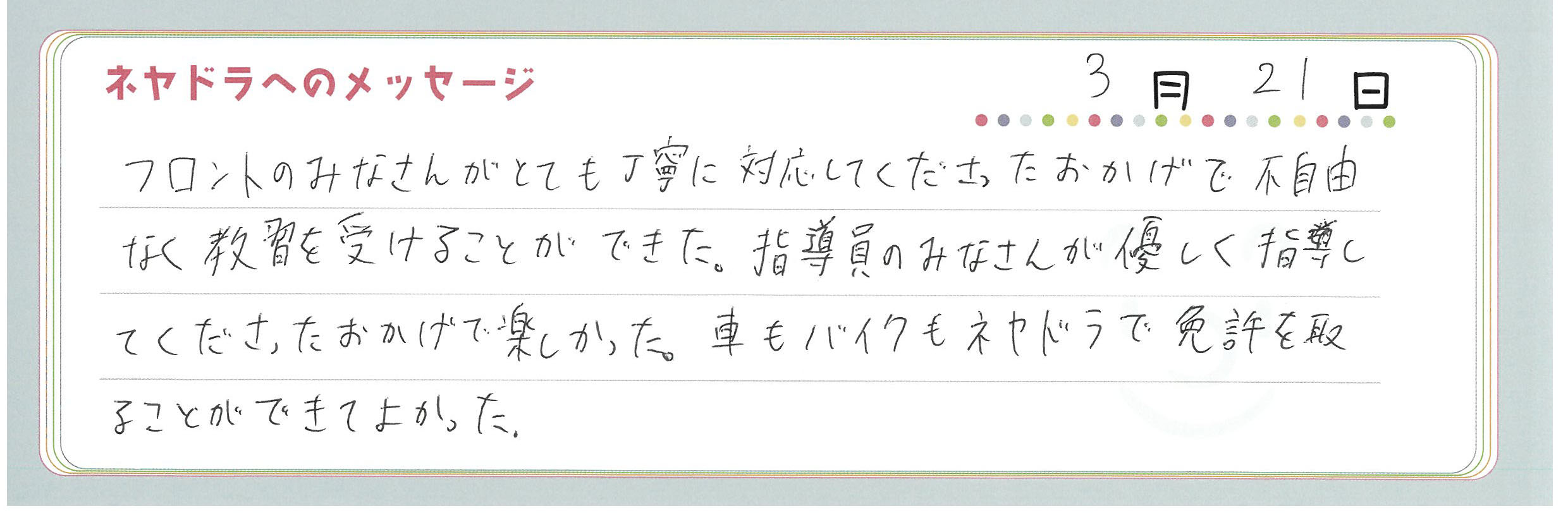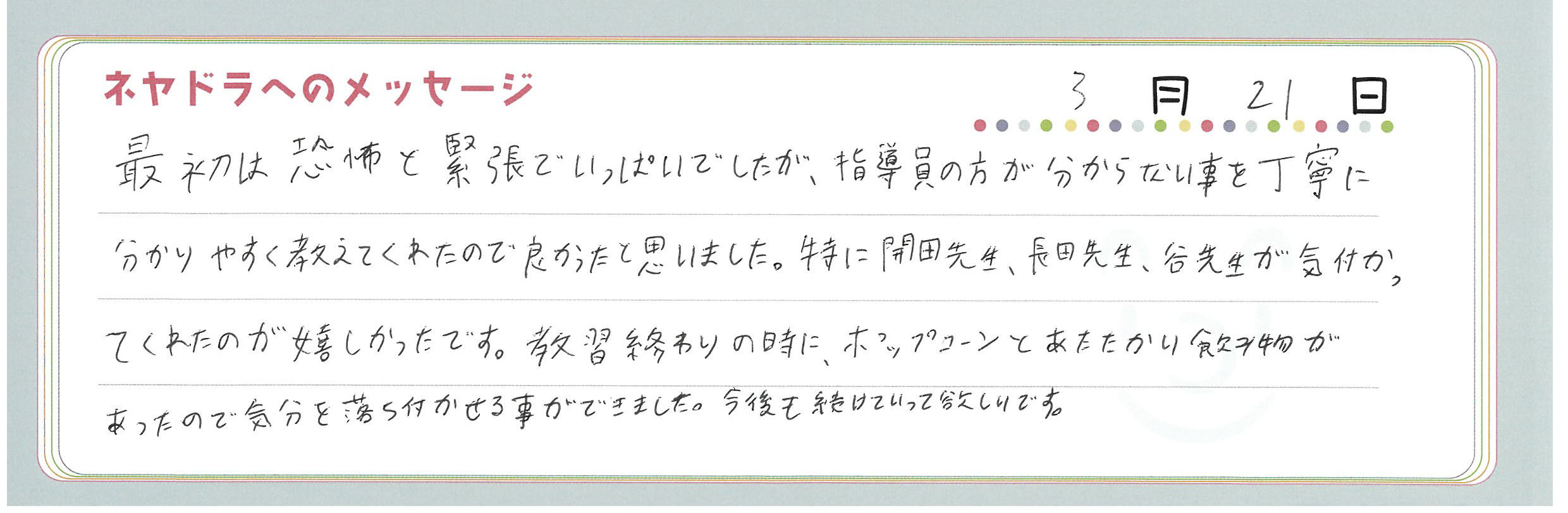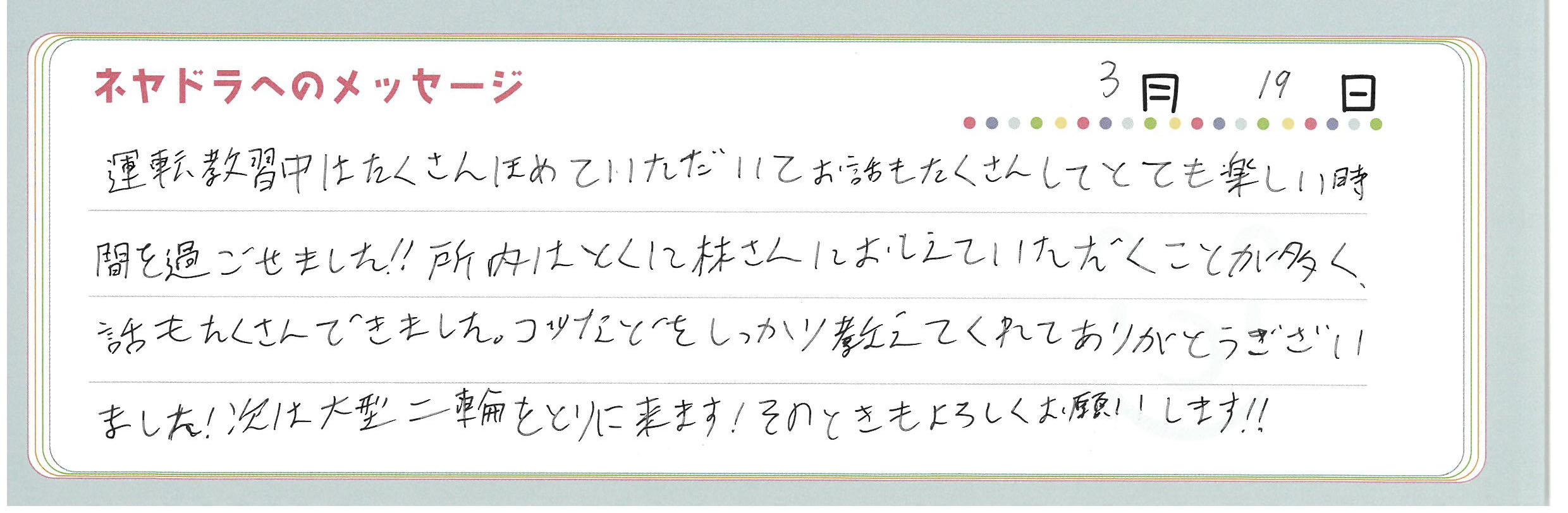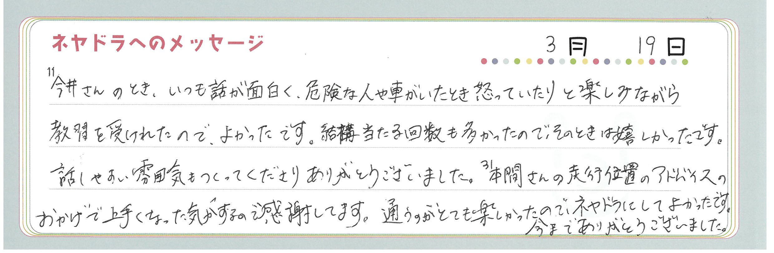 直筆メッセージ