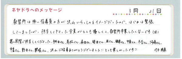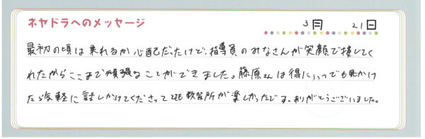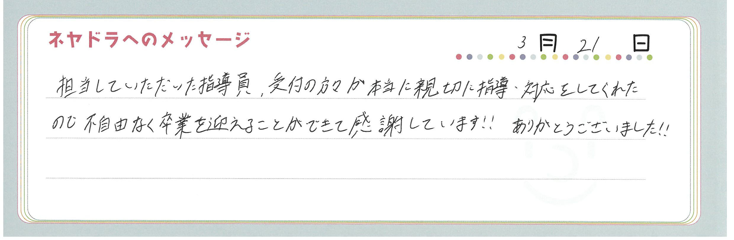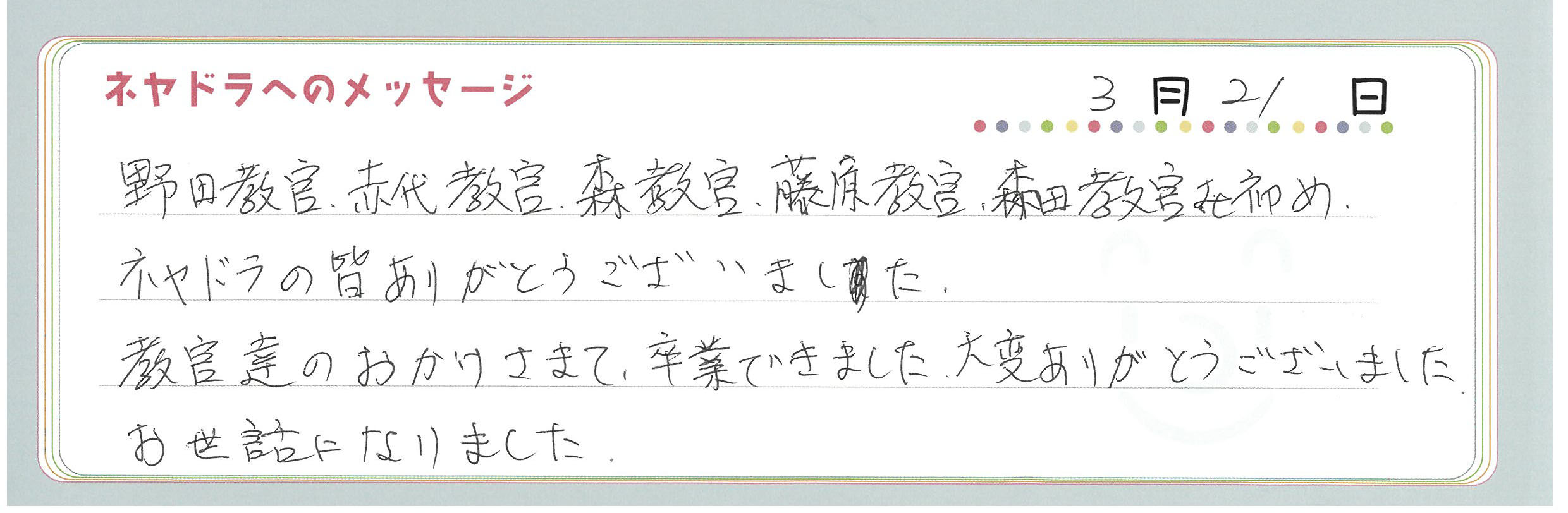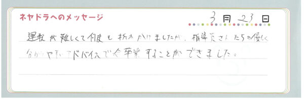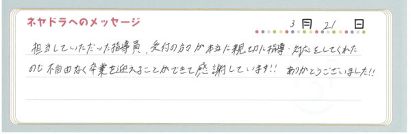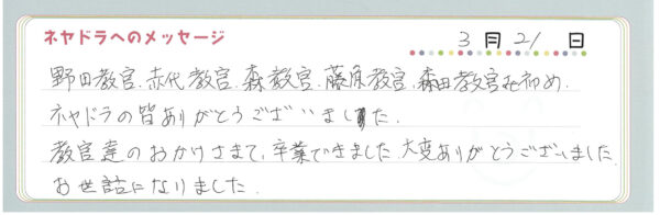 ご卒業時にお客様よりいただいた