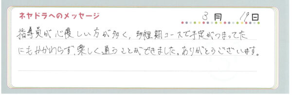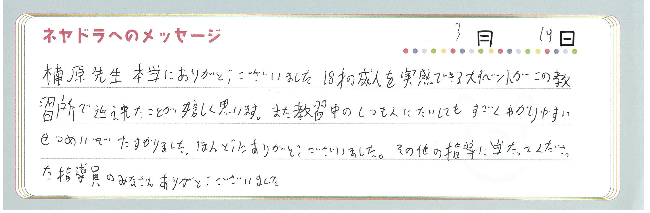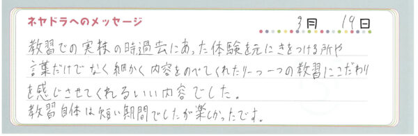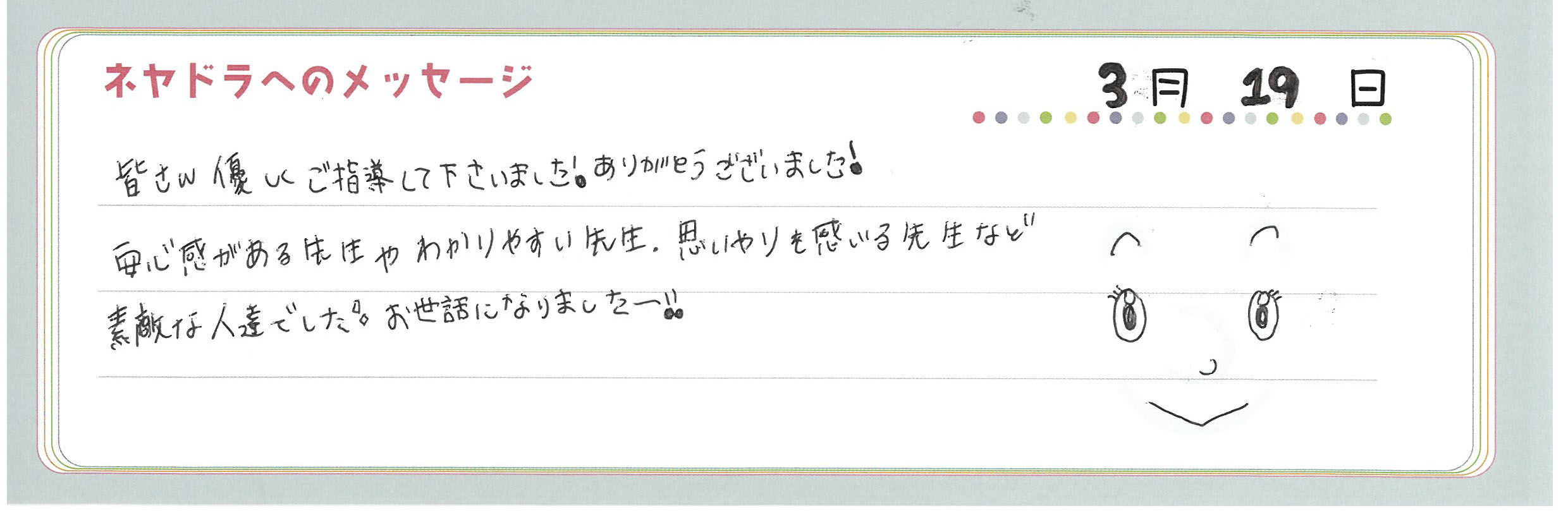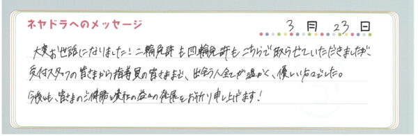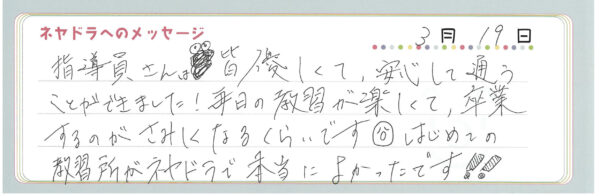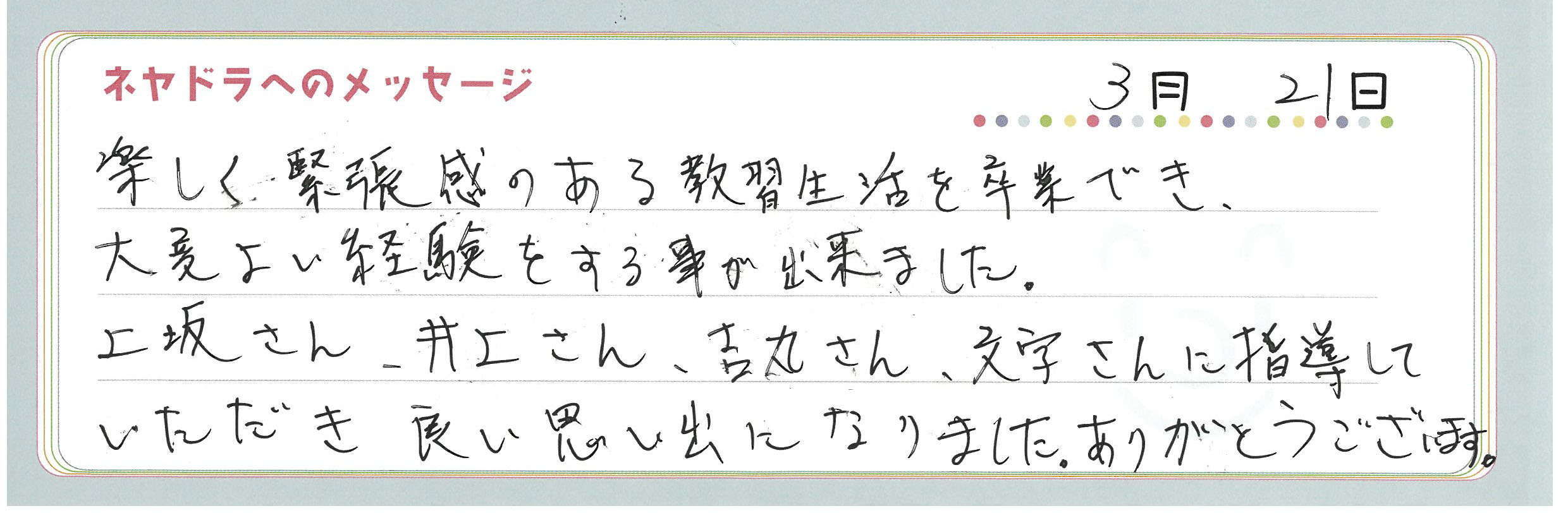 ご卒業時にお客様よりいただいた