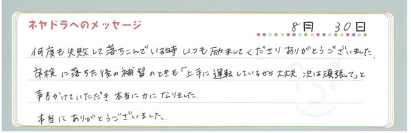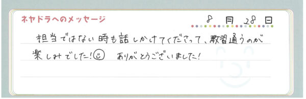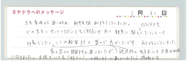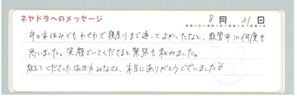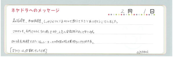 ご卒業時にお客様よりいただいた