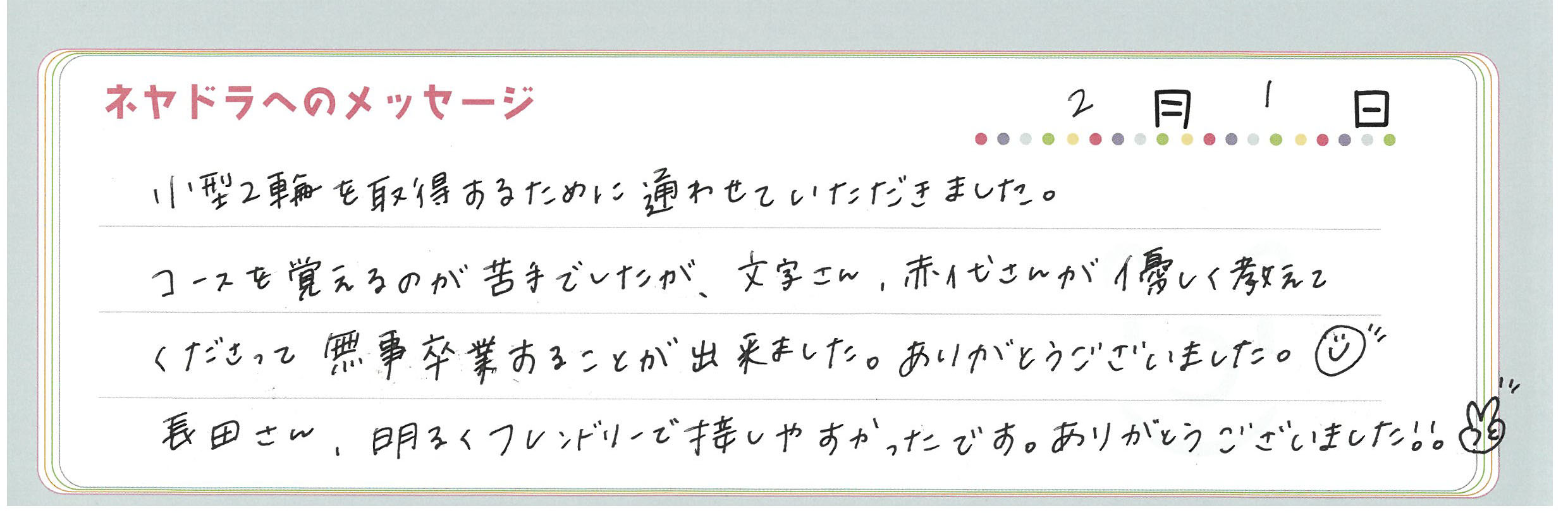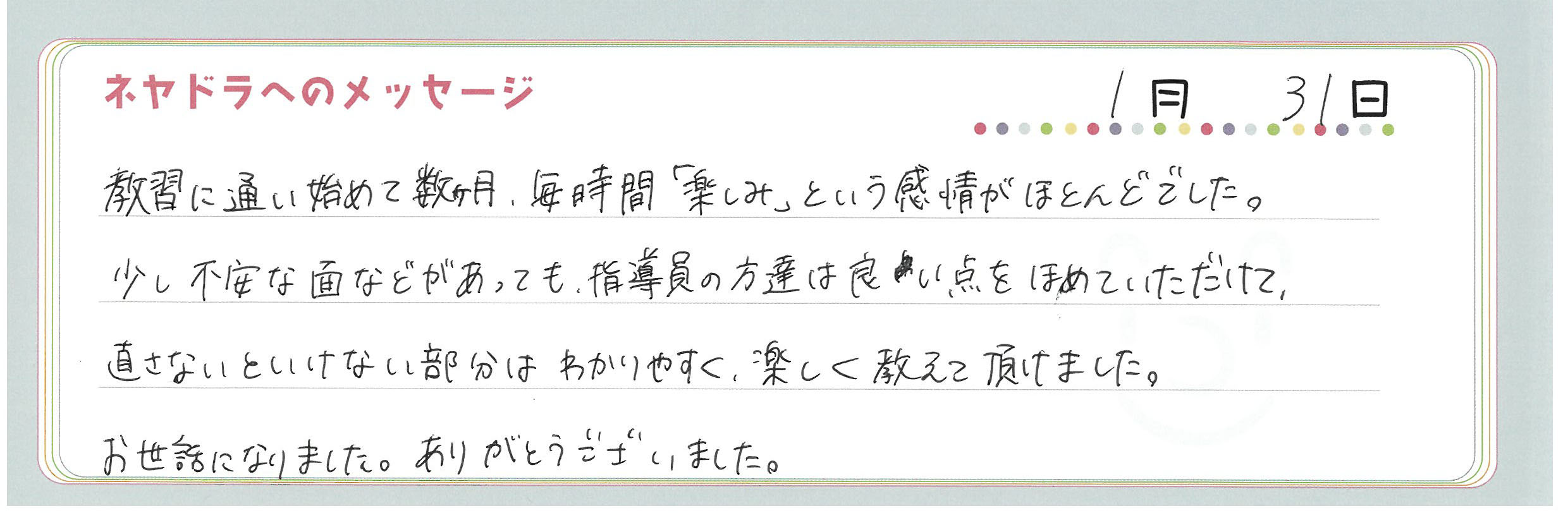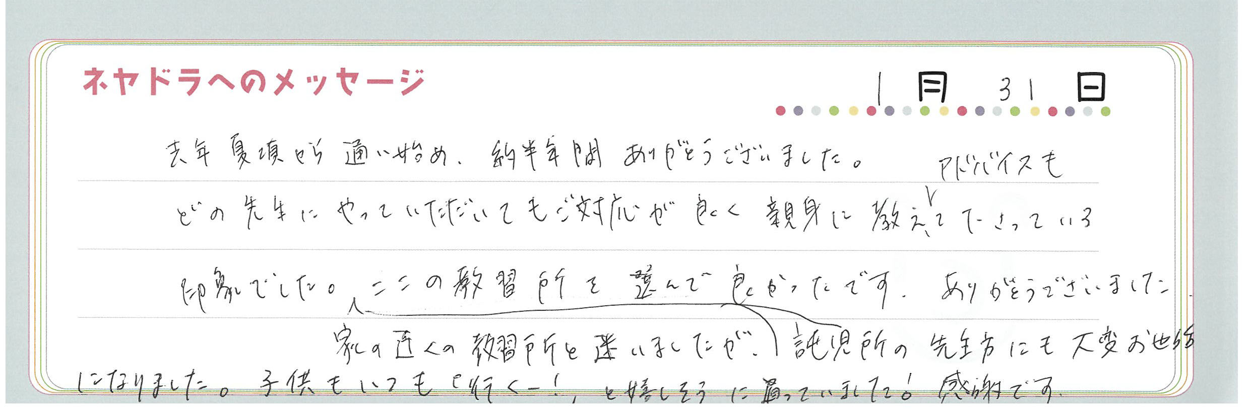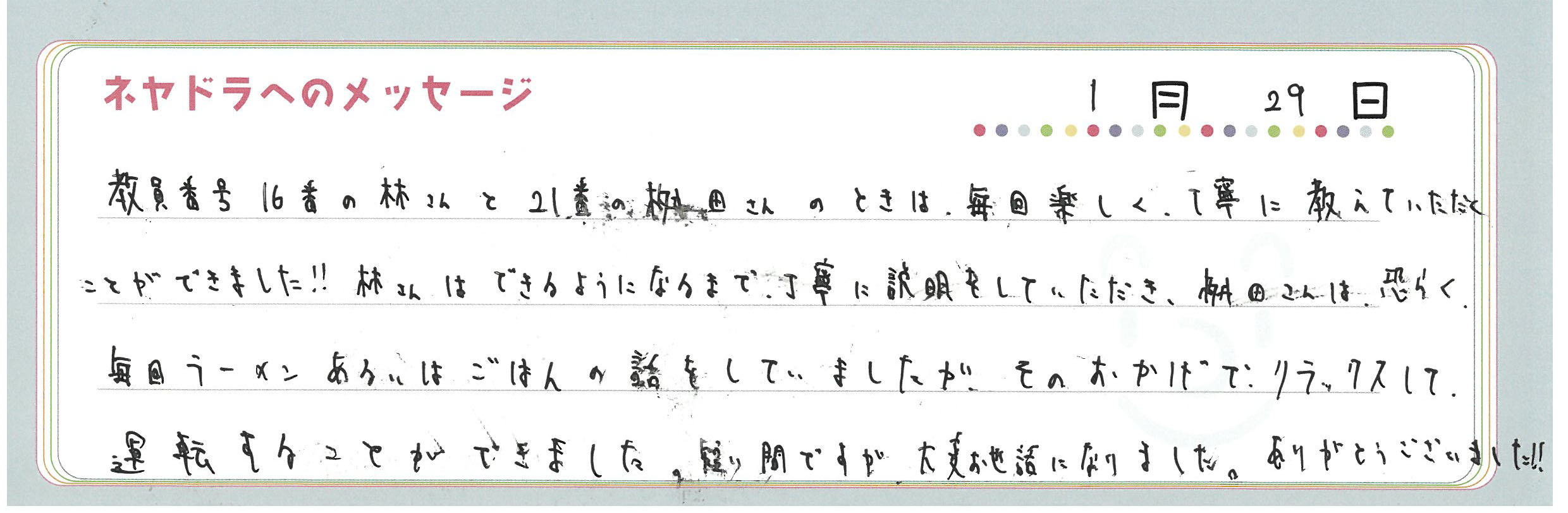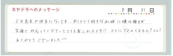 直筆メッセージ