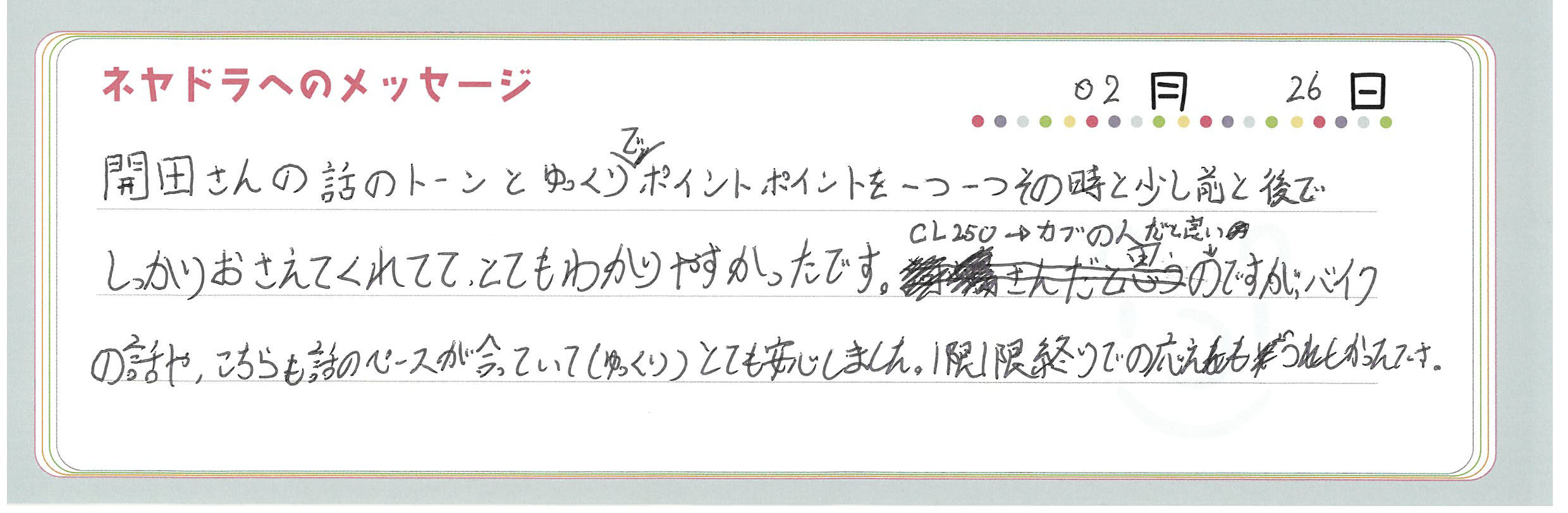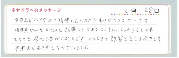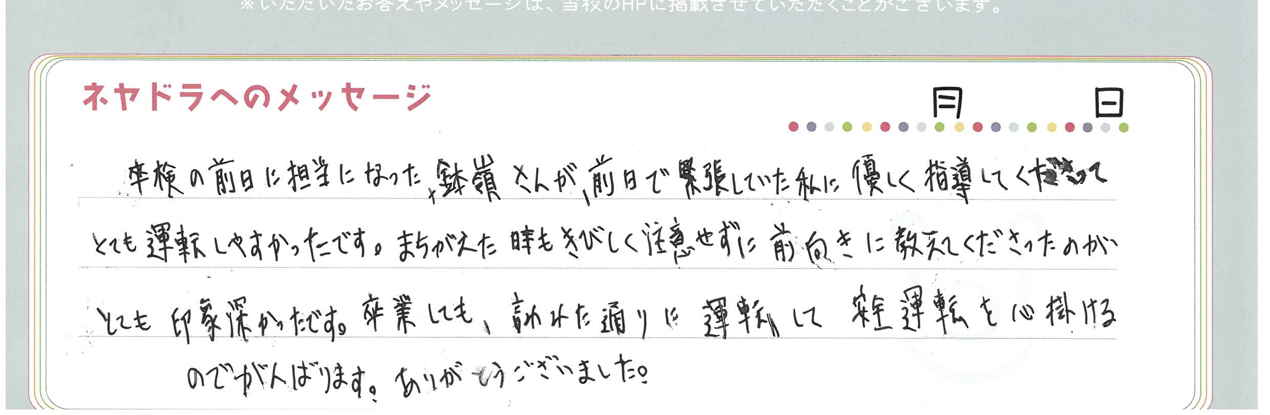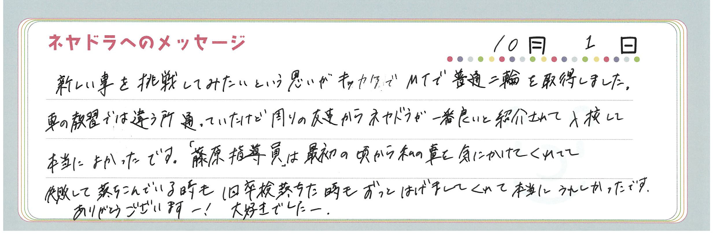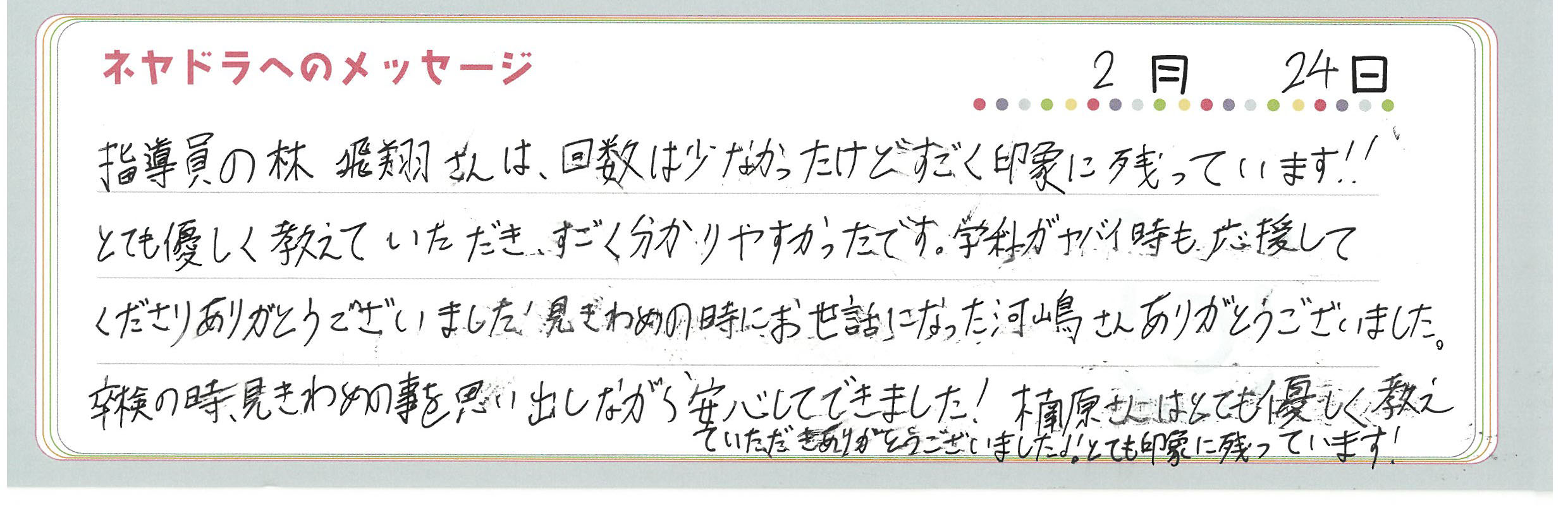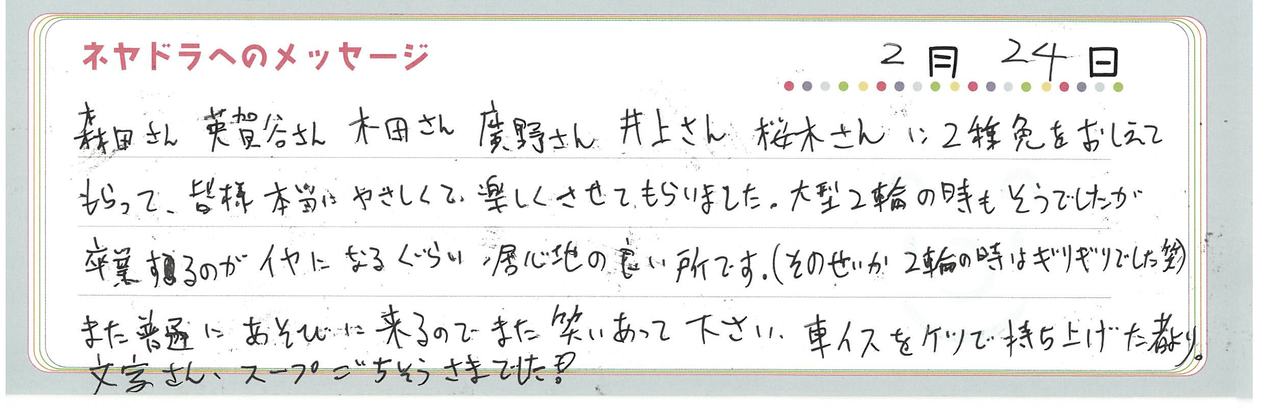 直筆メッセージ