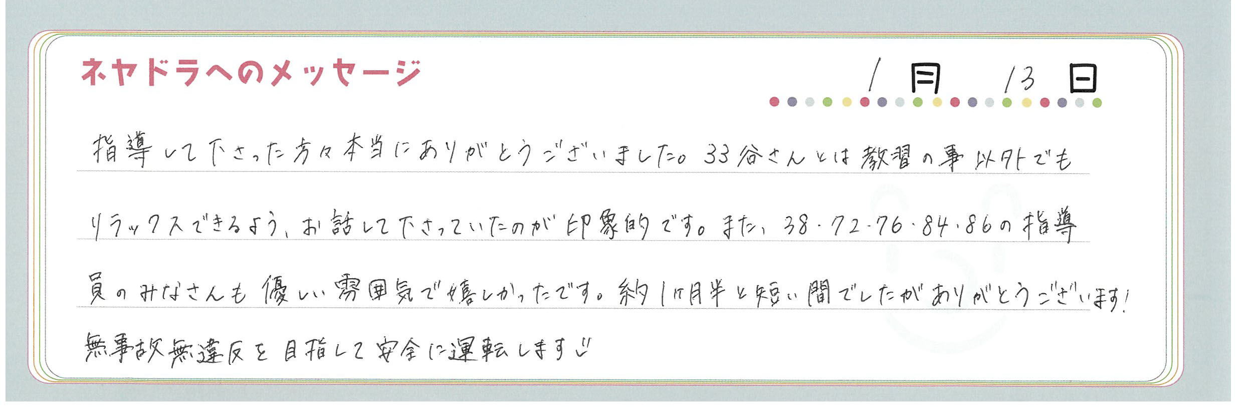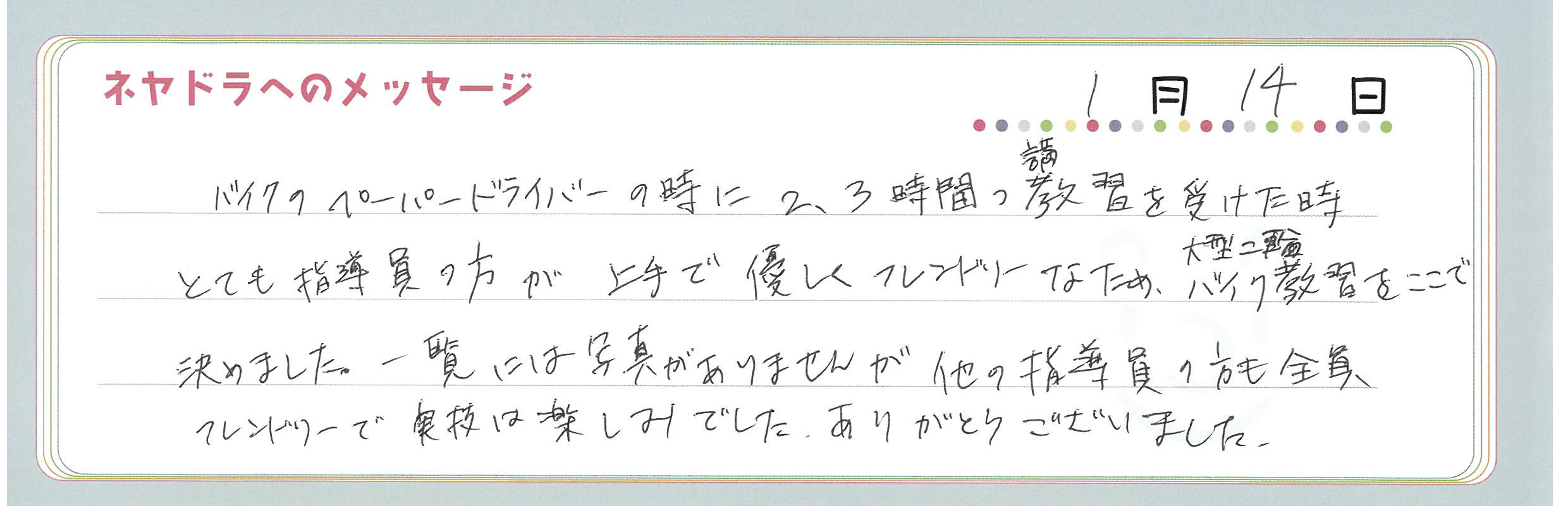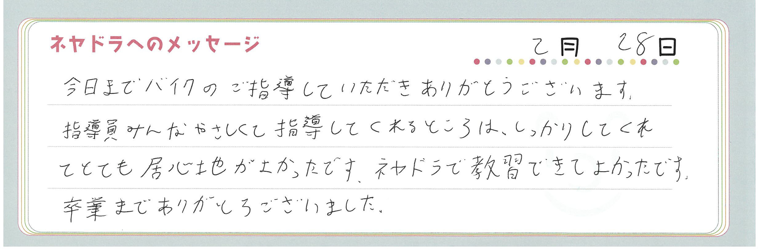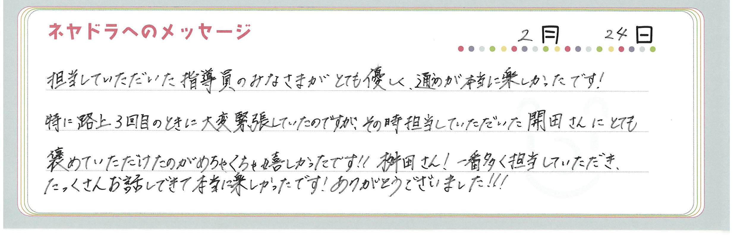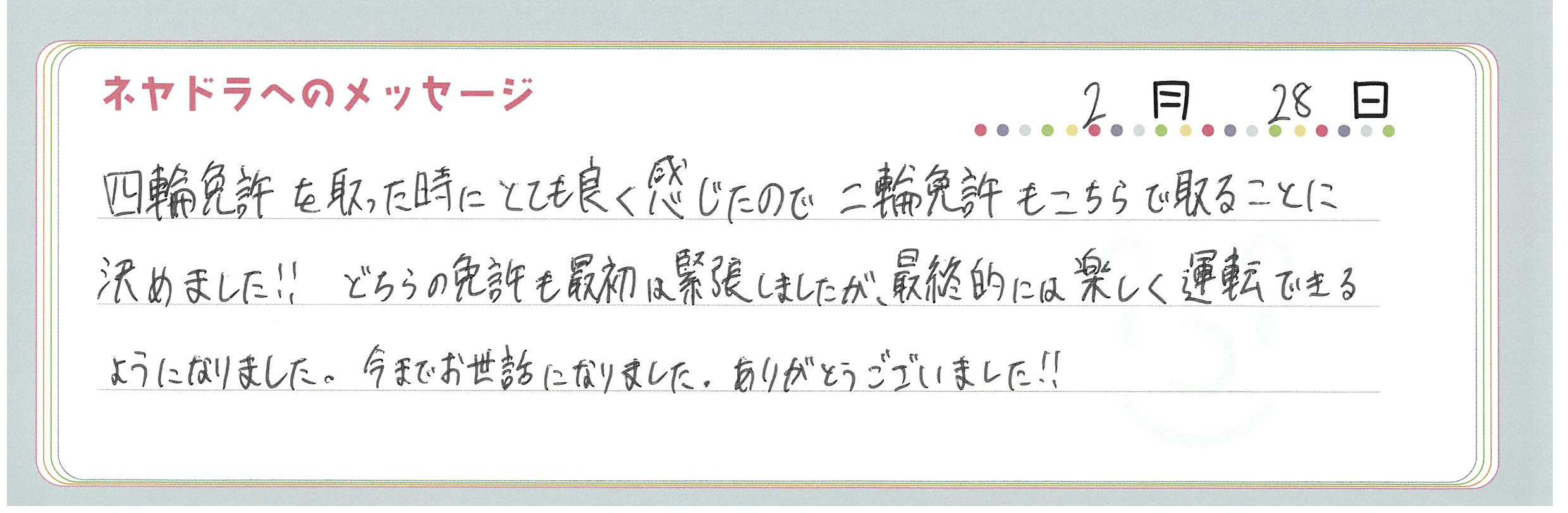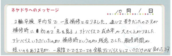 直筆メッセージ