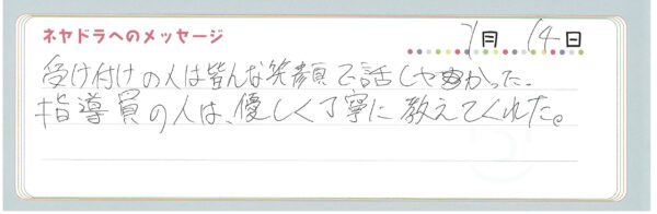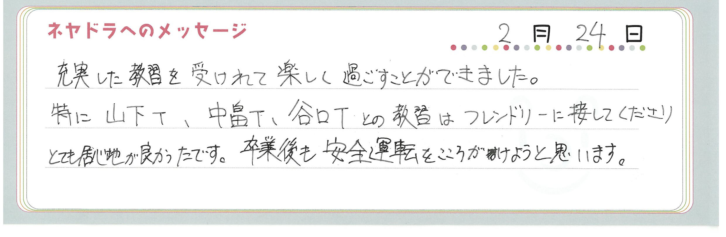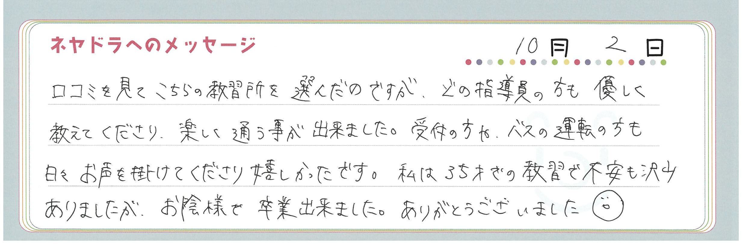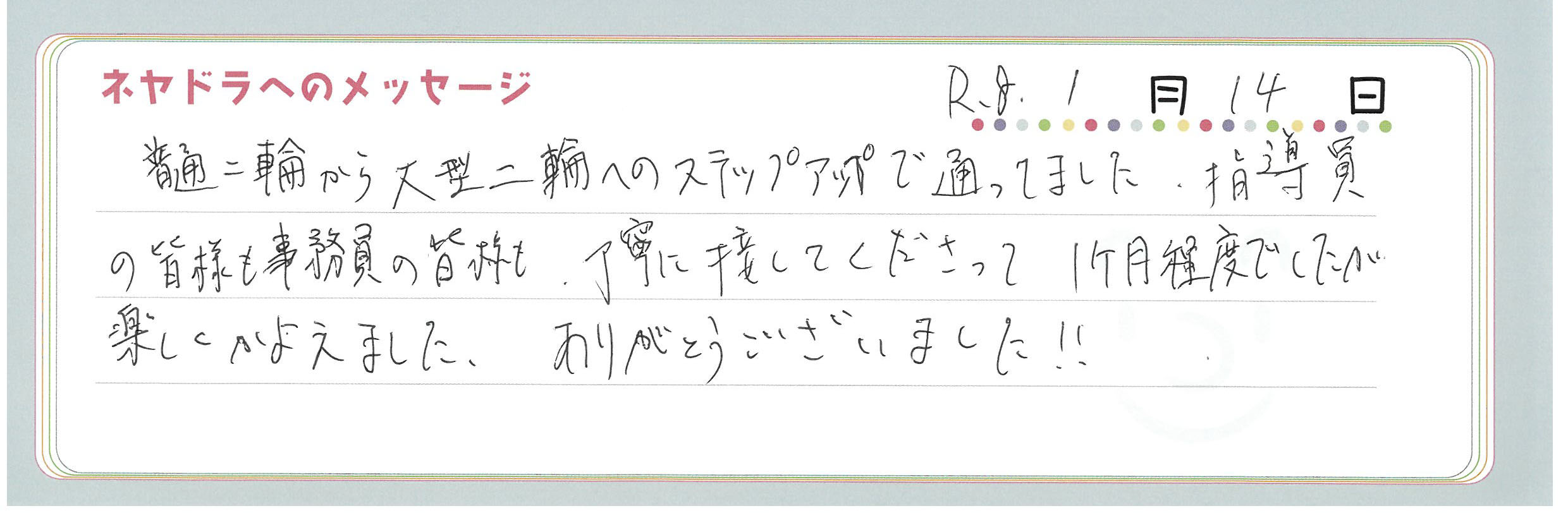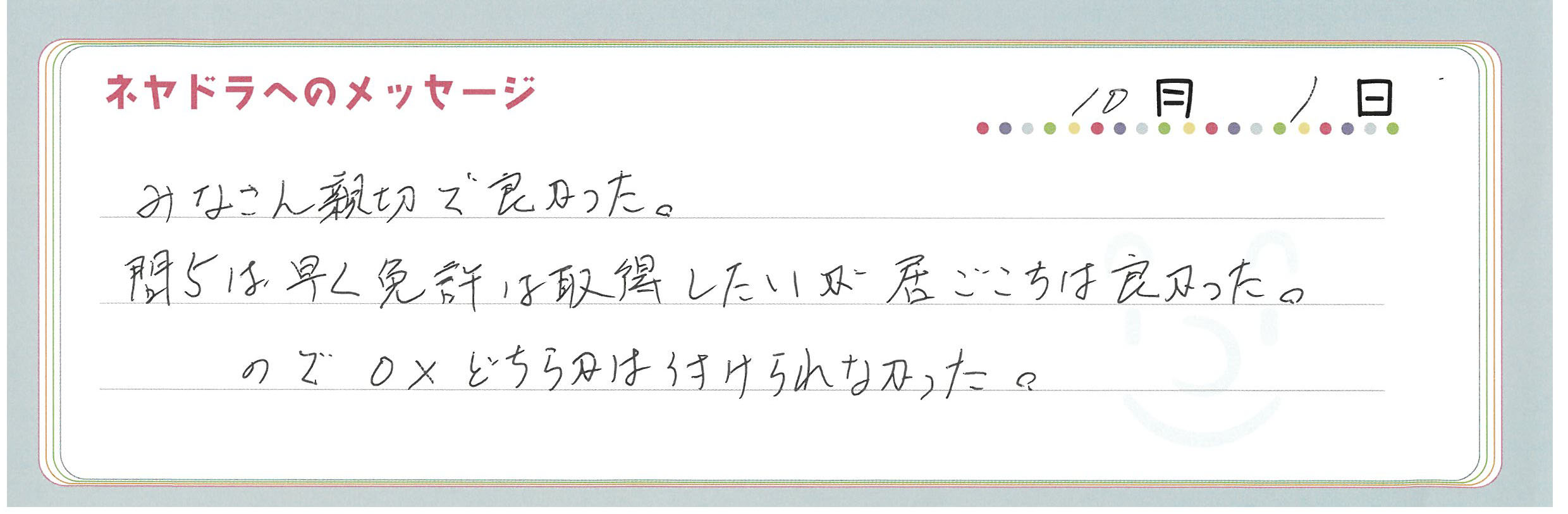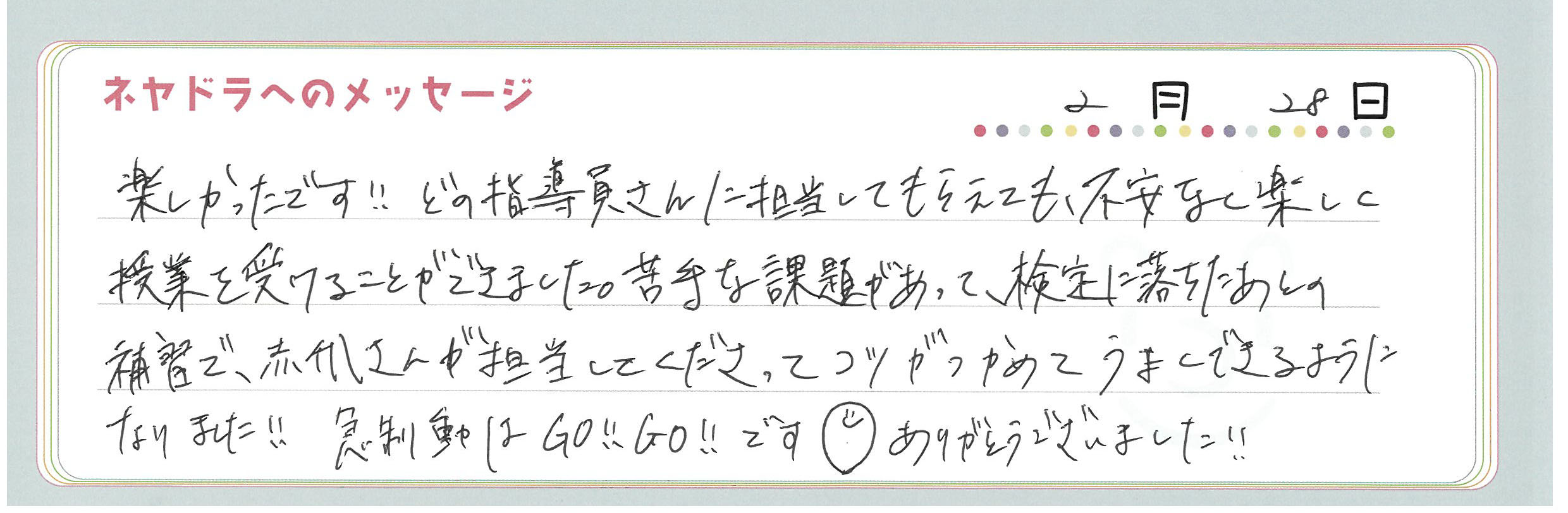直筆メッセージ