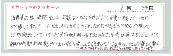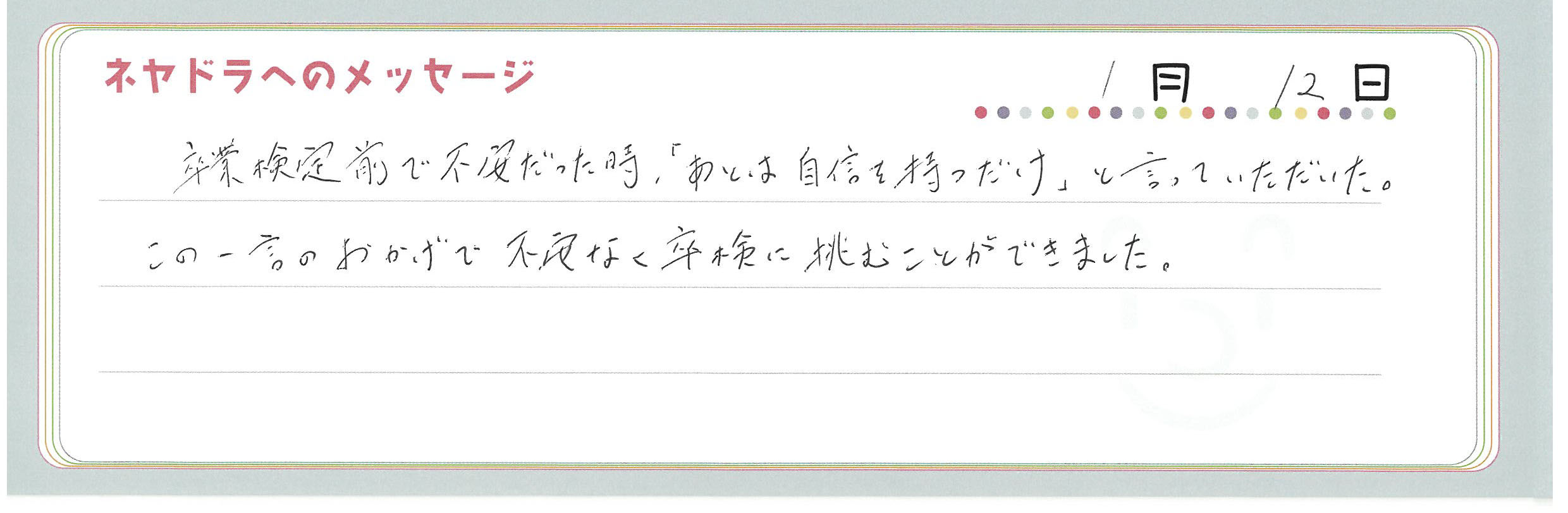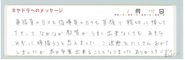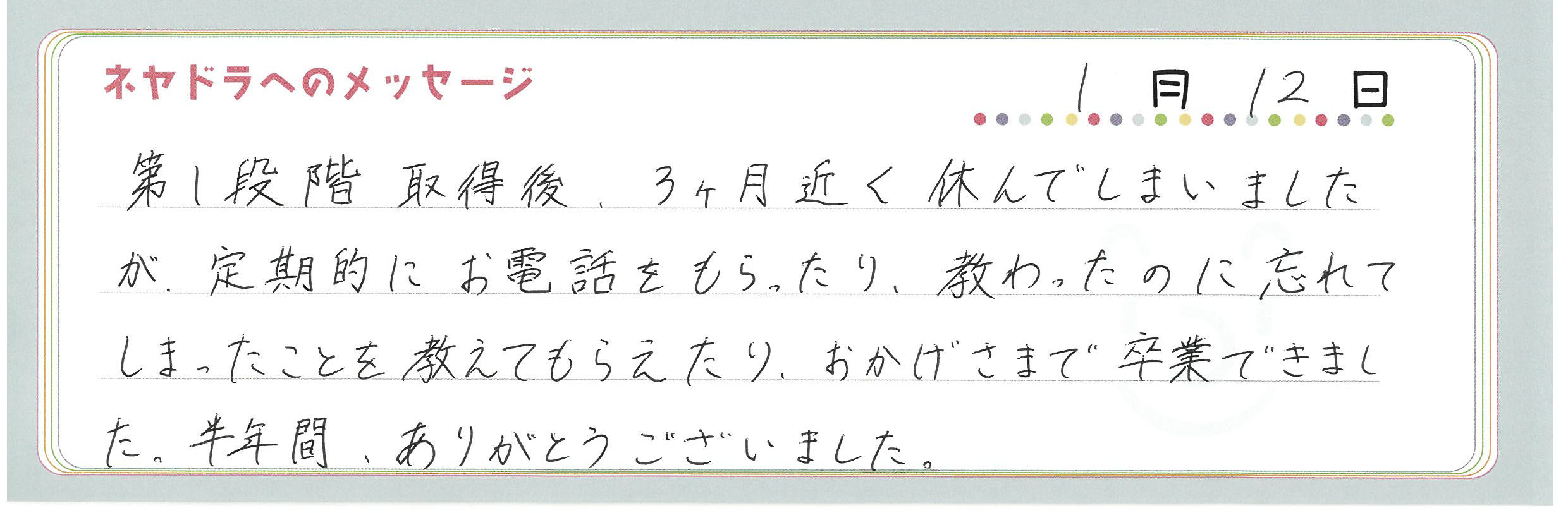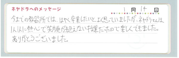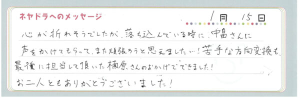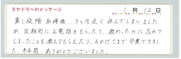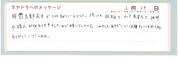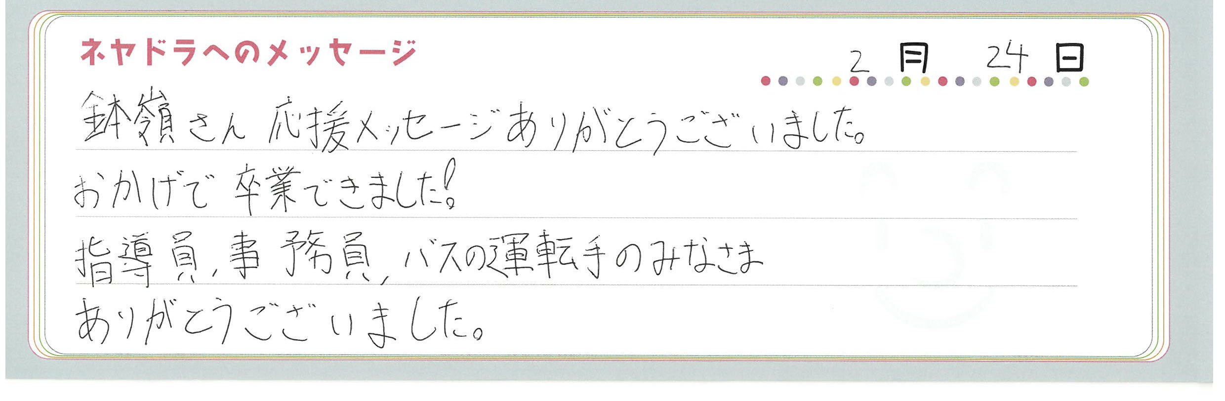 ご卒業時にお客様よりいただいた