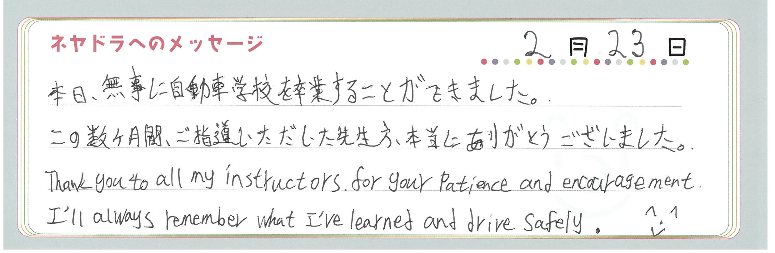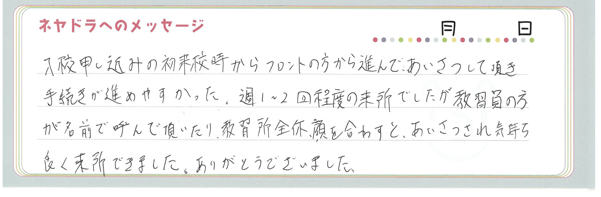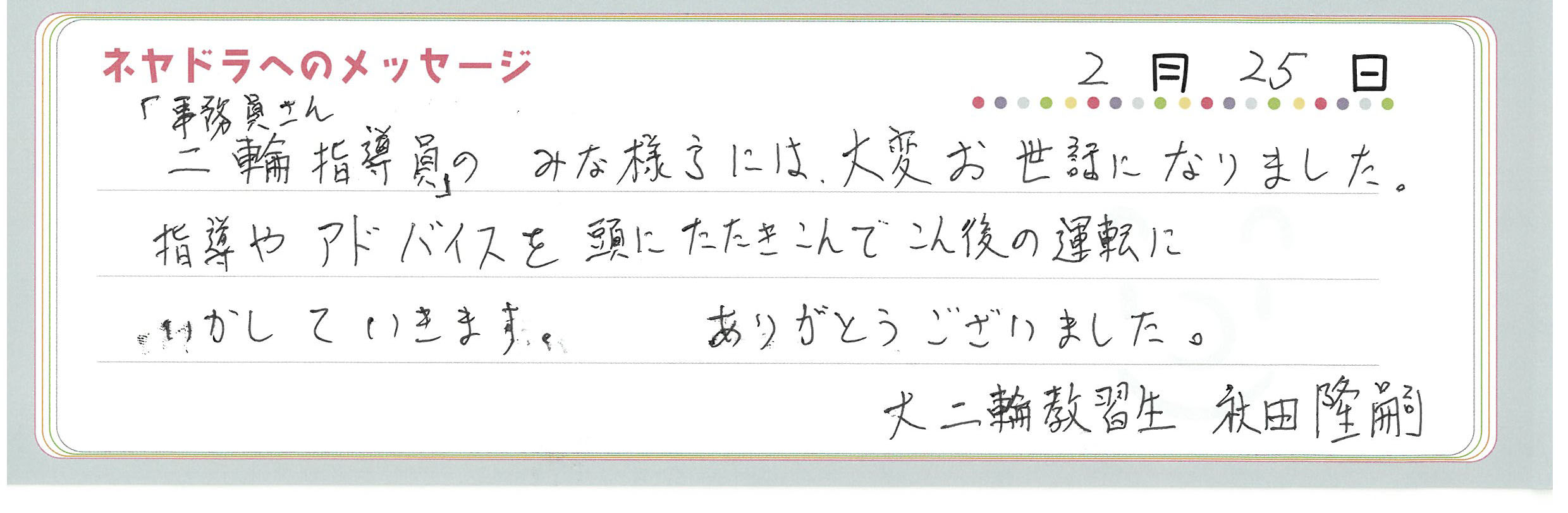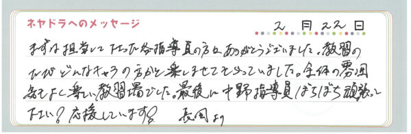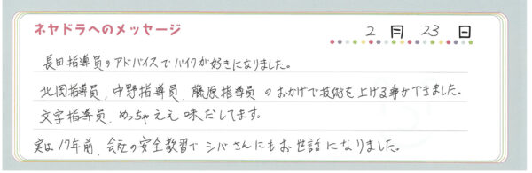 直筆メッセージ