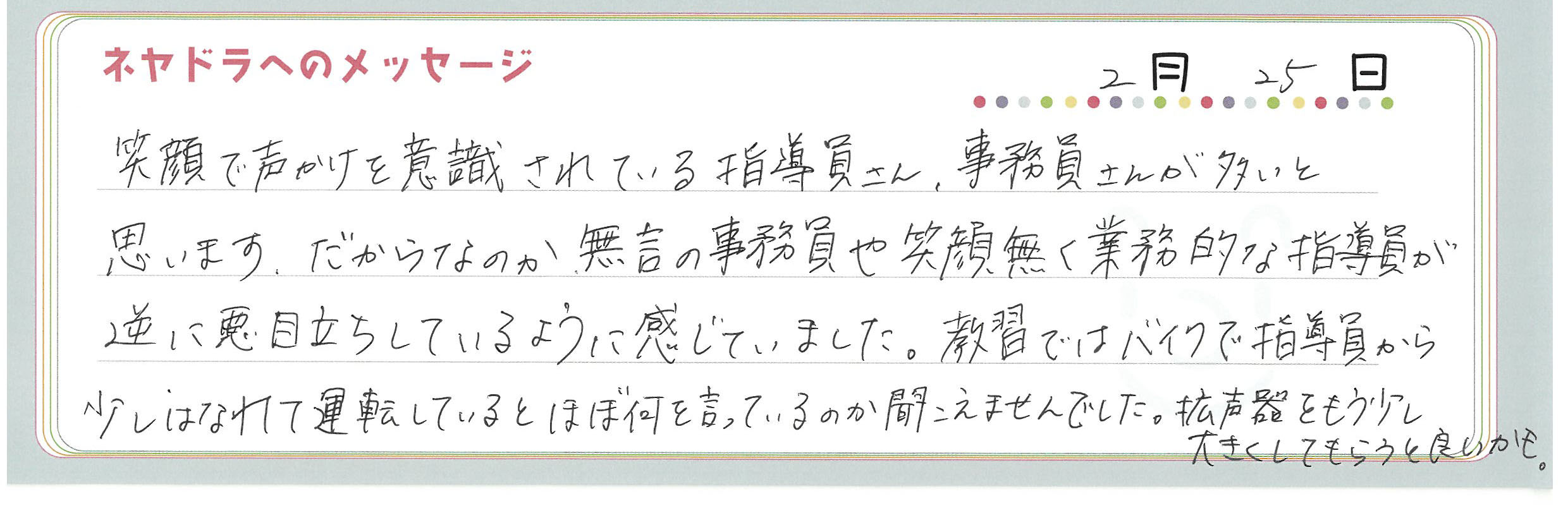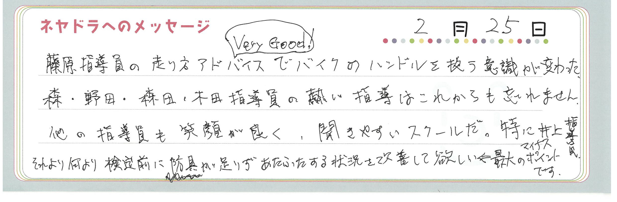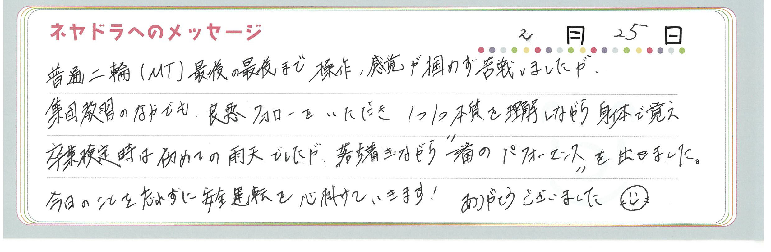 直筆メッセージ