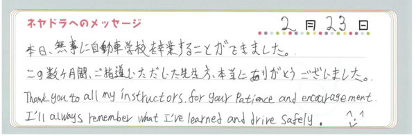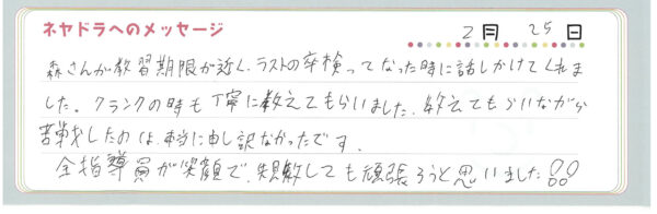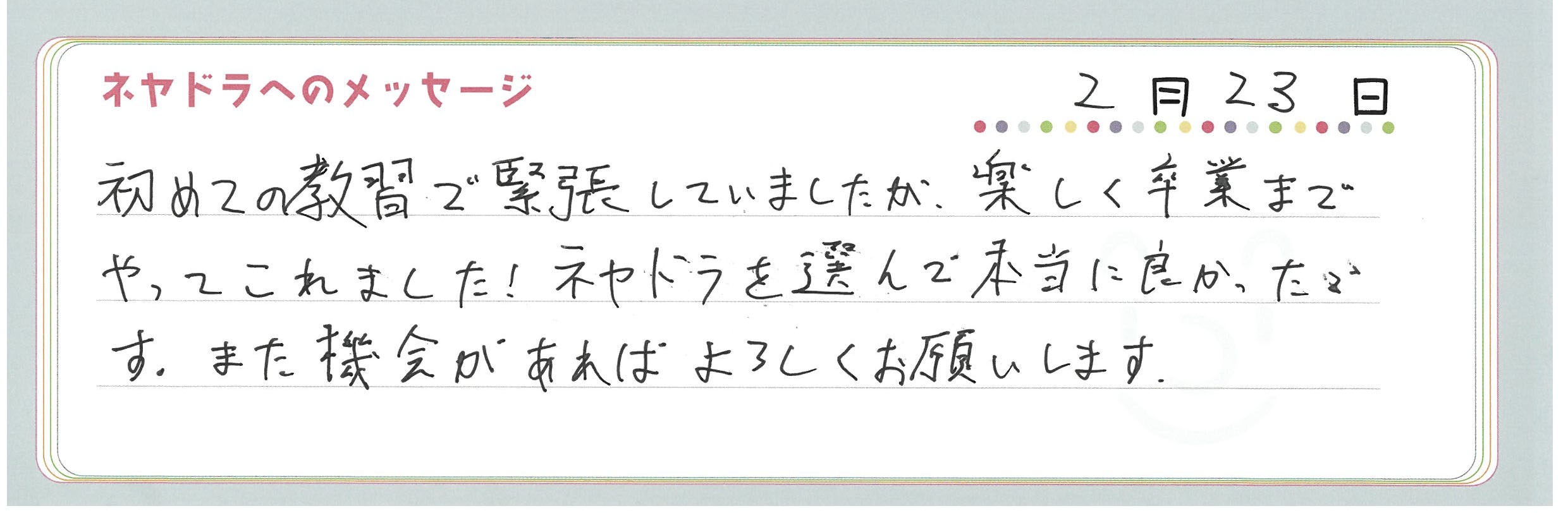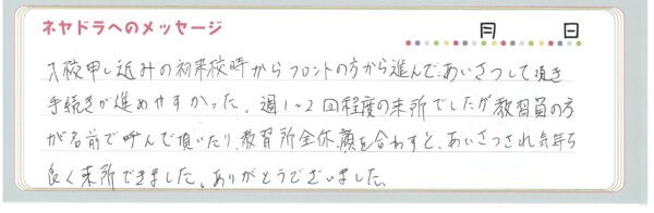 ご卒業時にお客様よりいただいた