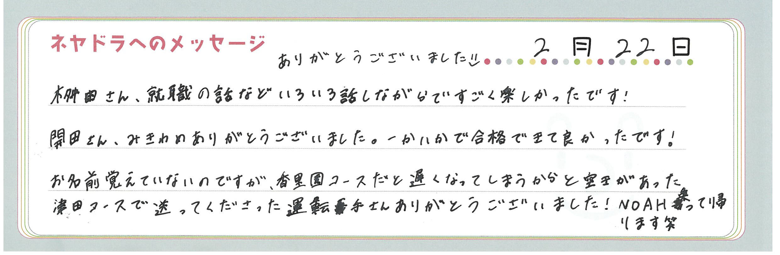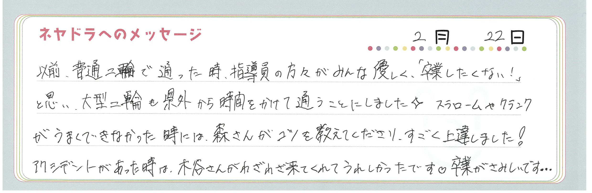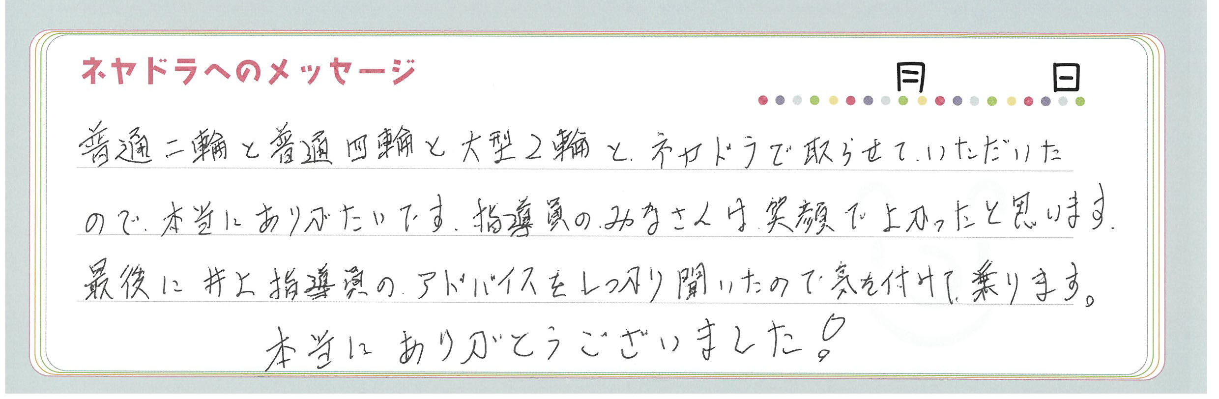 直筆メッセージ