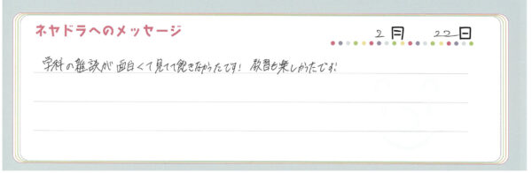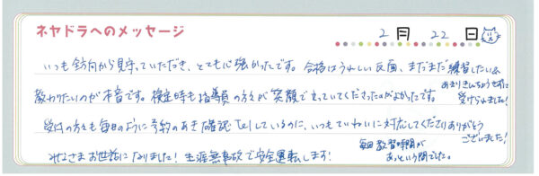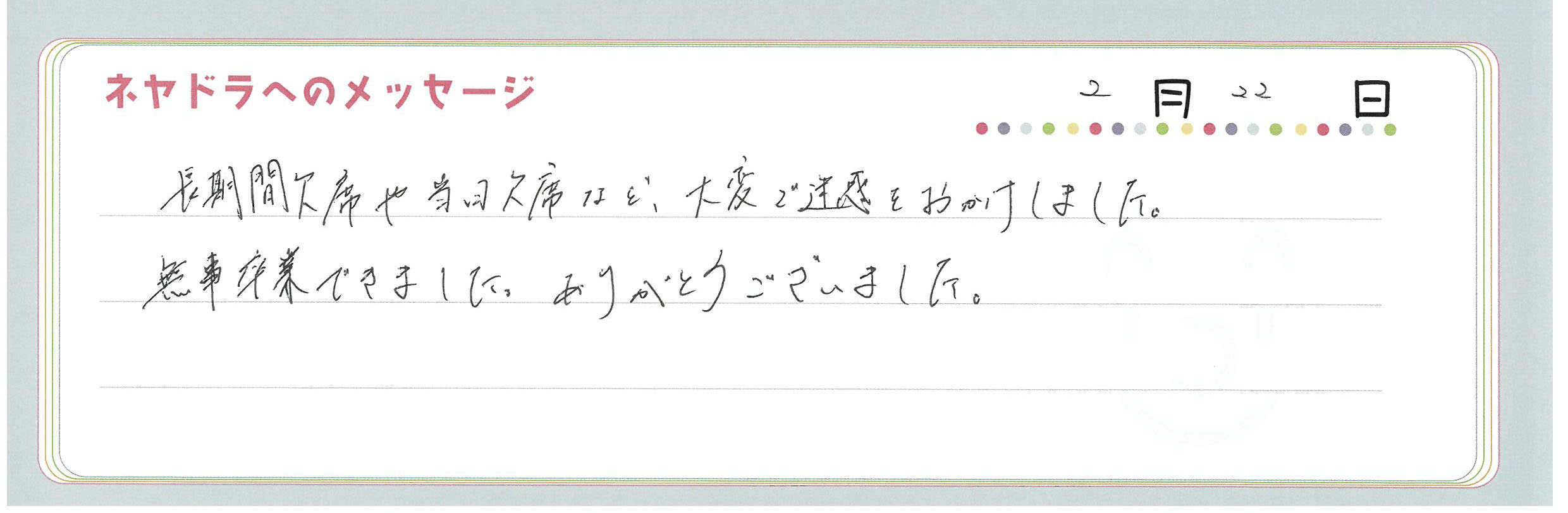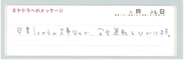 ご卒業時にお客様よりいただいた