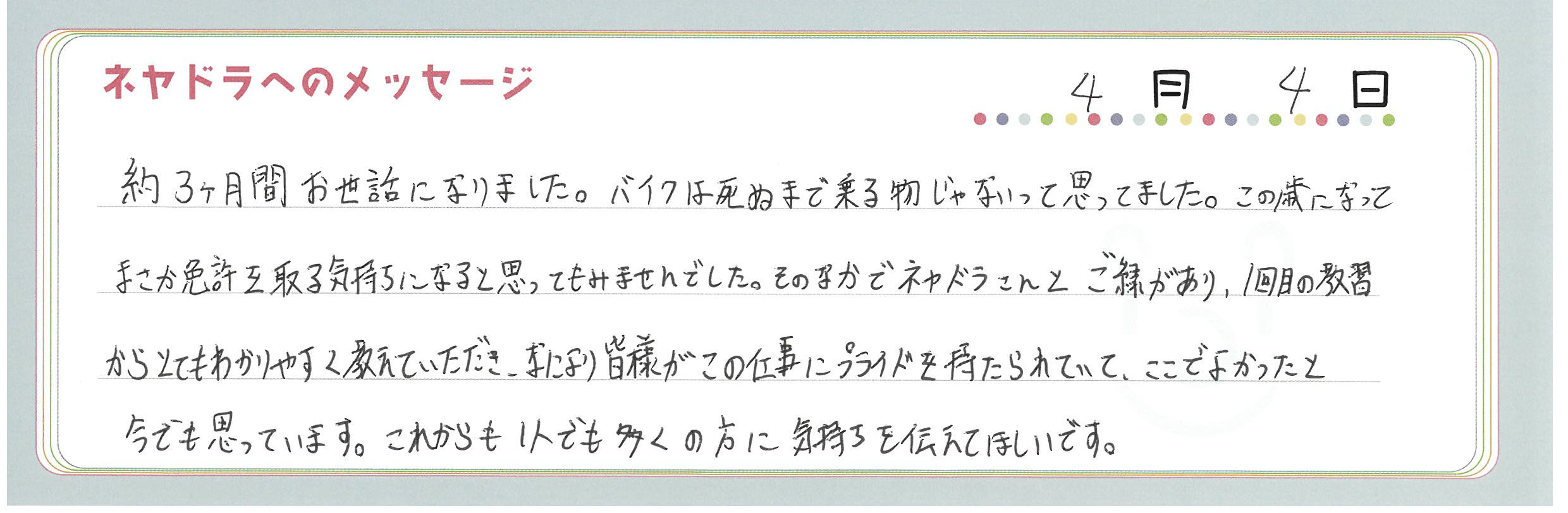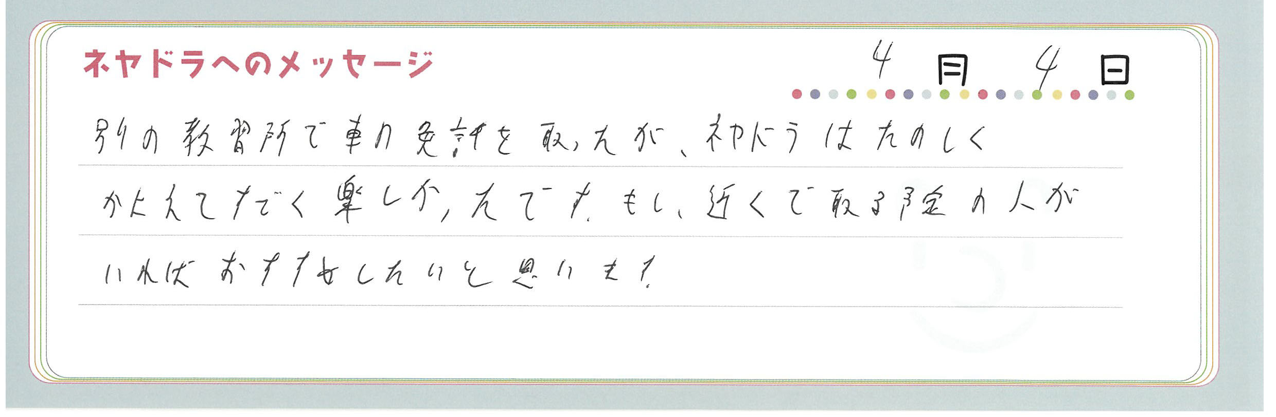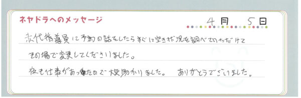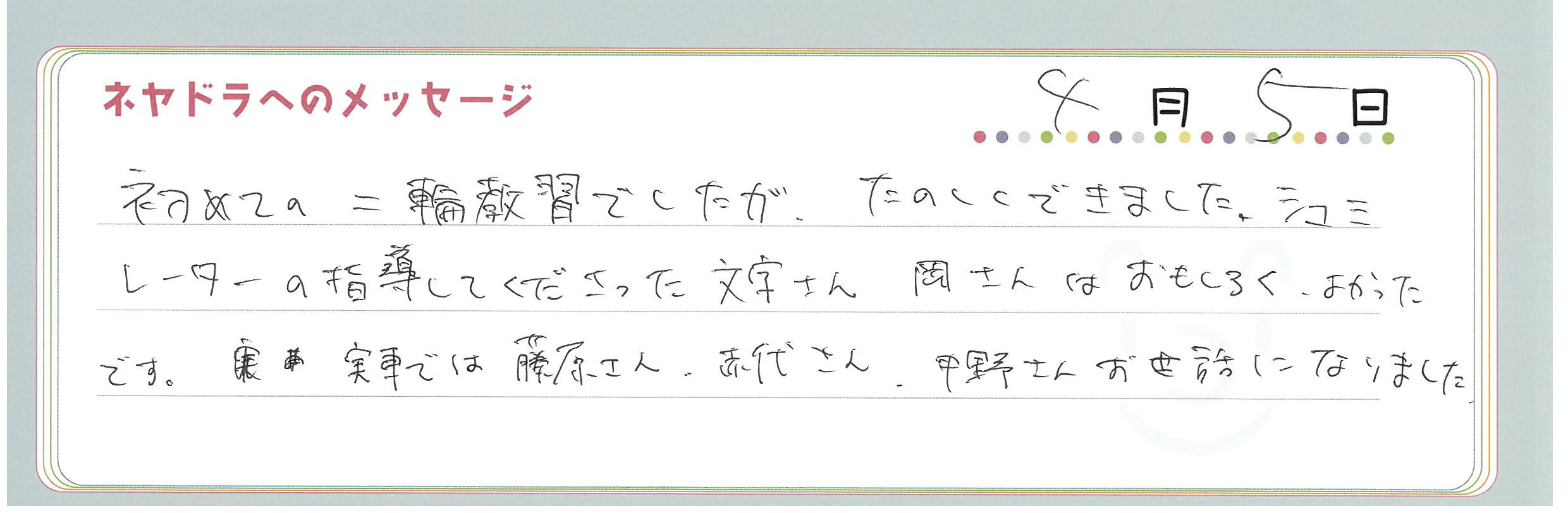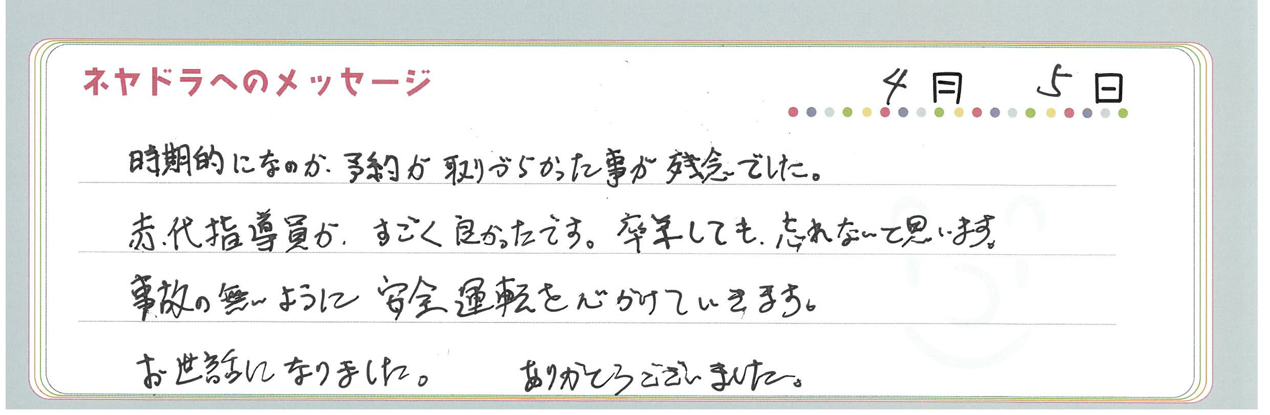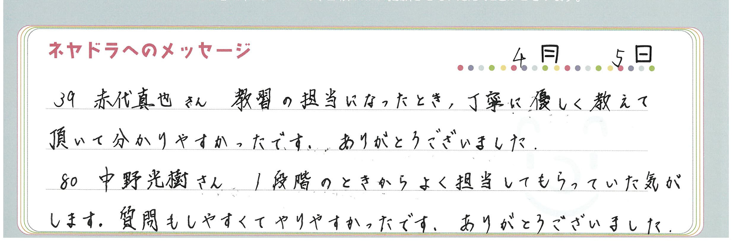 直筆メッセージ