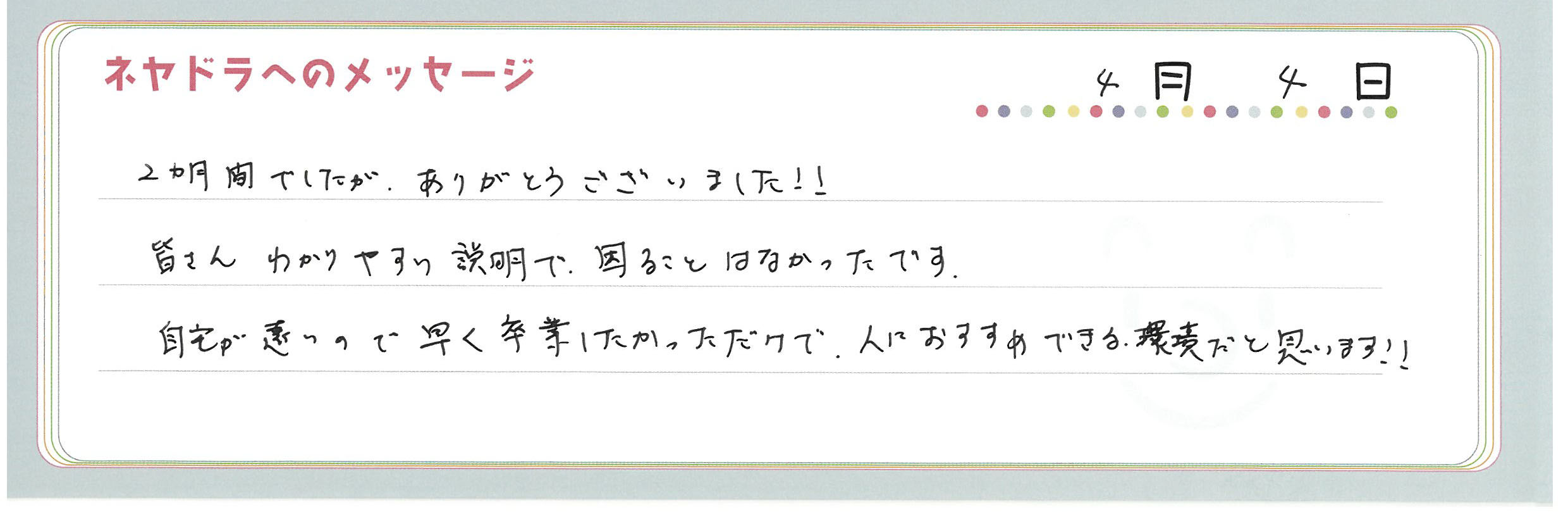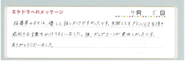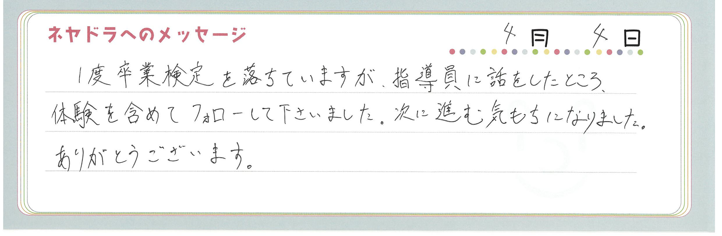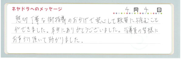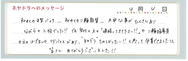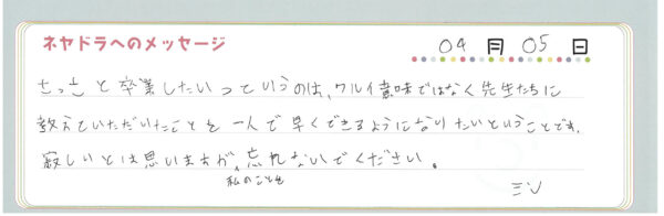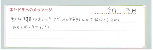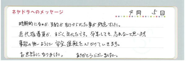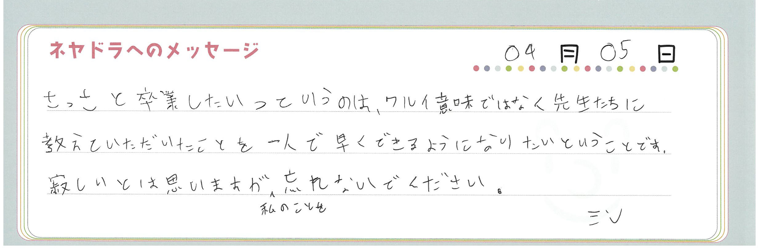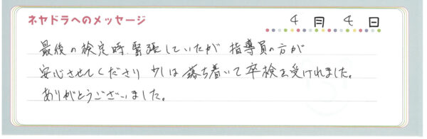 ご卒業時にお客様よりいただいた