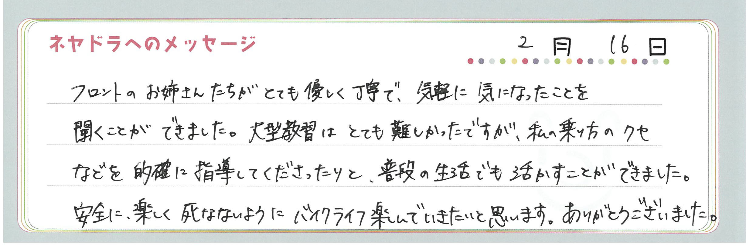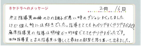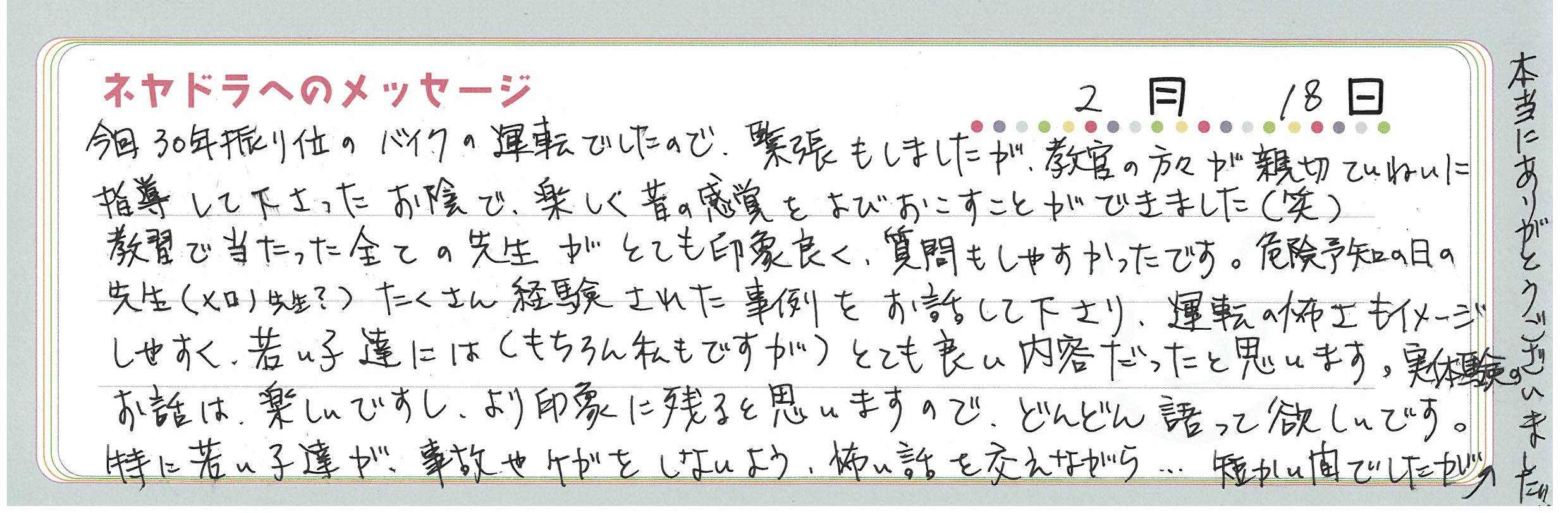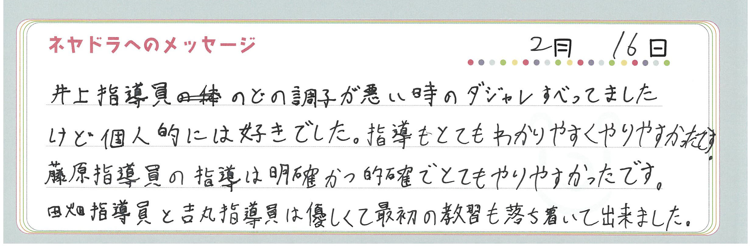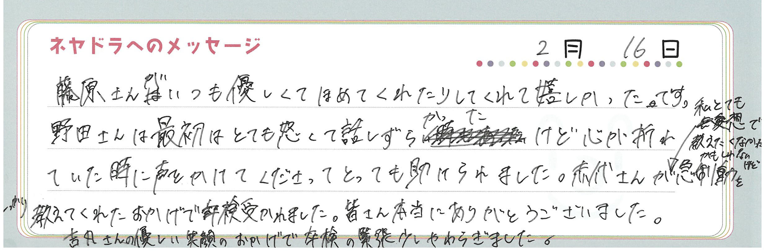 直筆メッセージ
