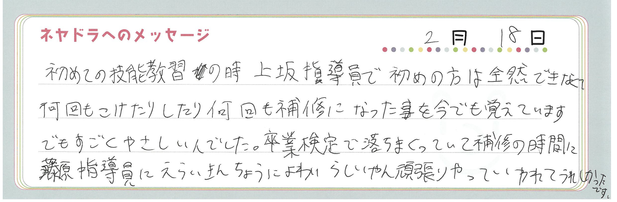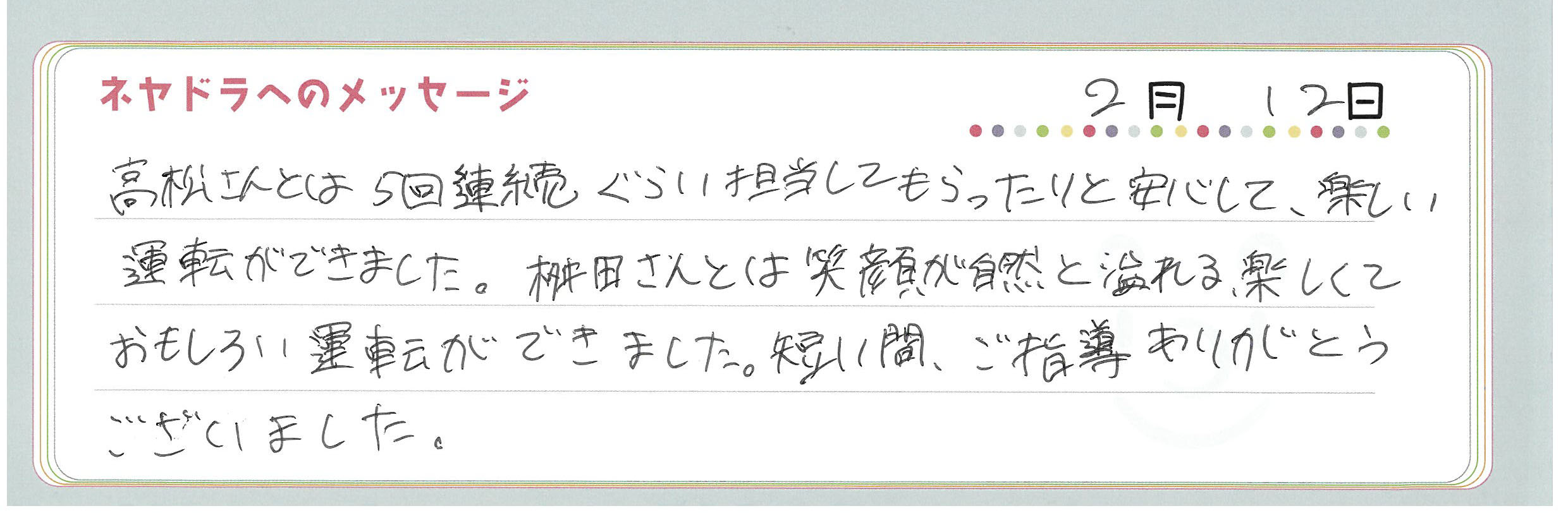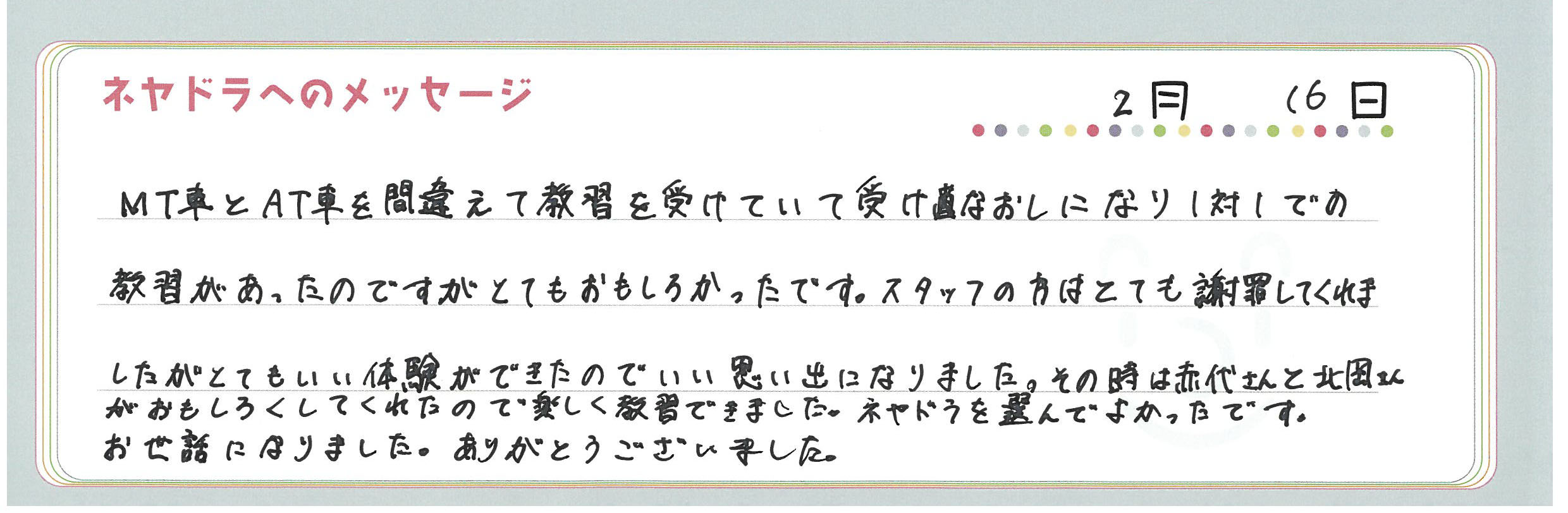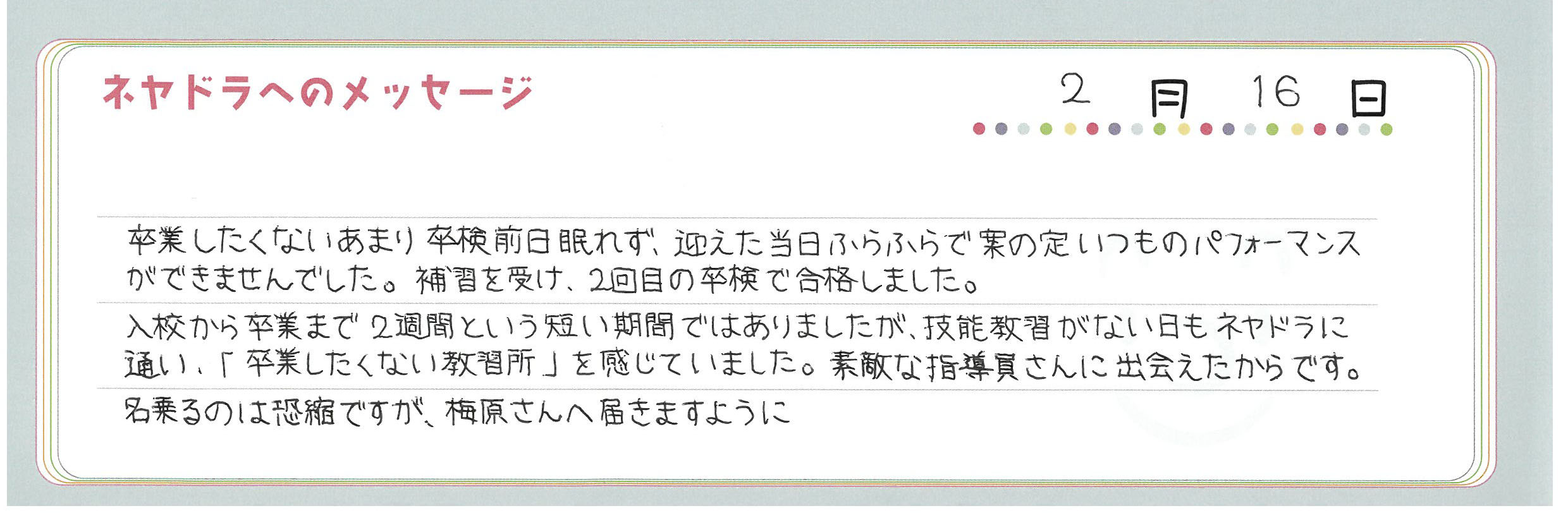 直筆メッセージ