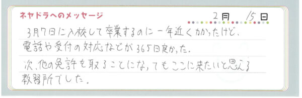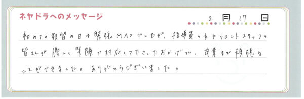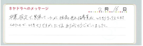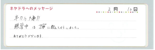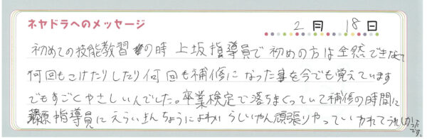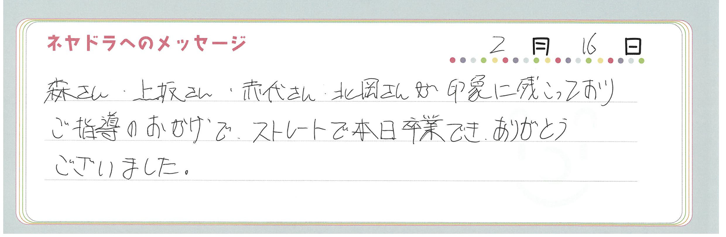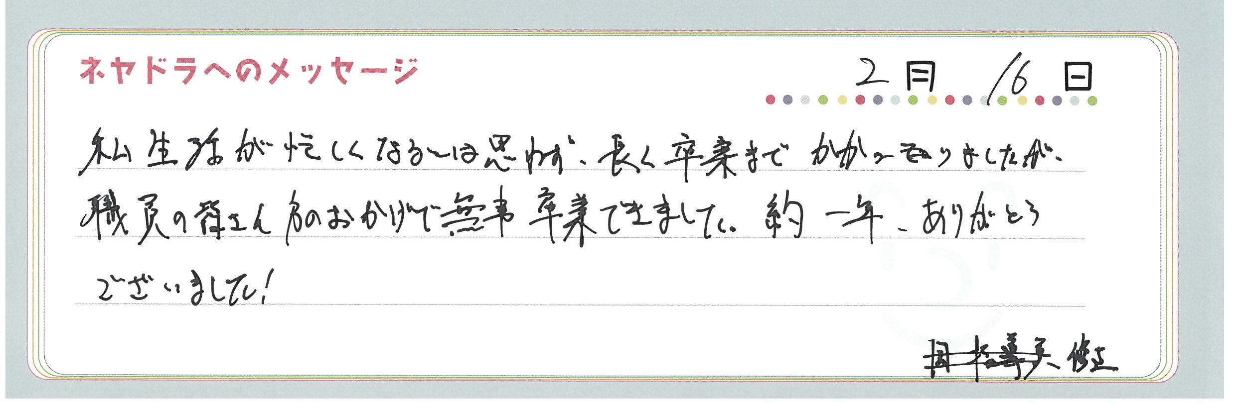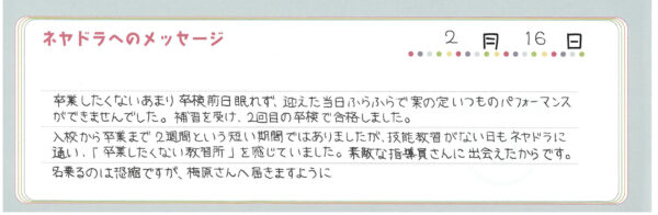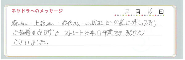 ご卒業時にお客様よりいただいた